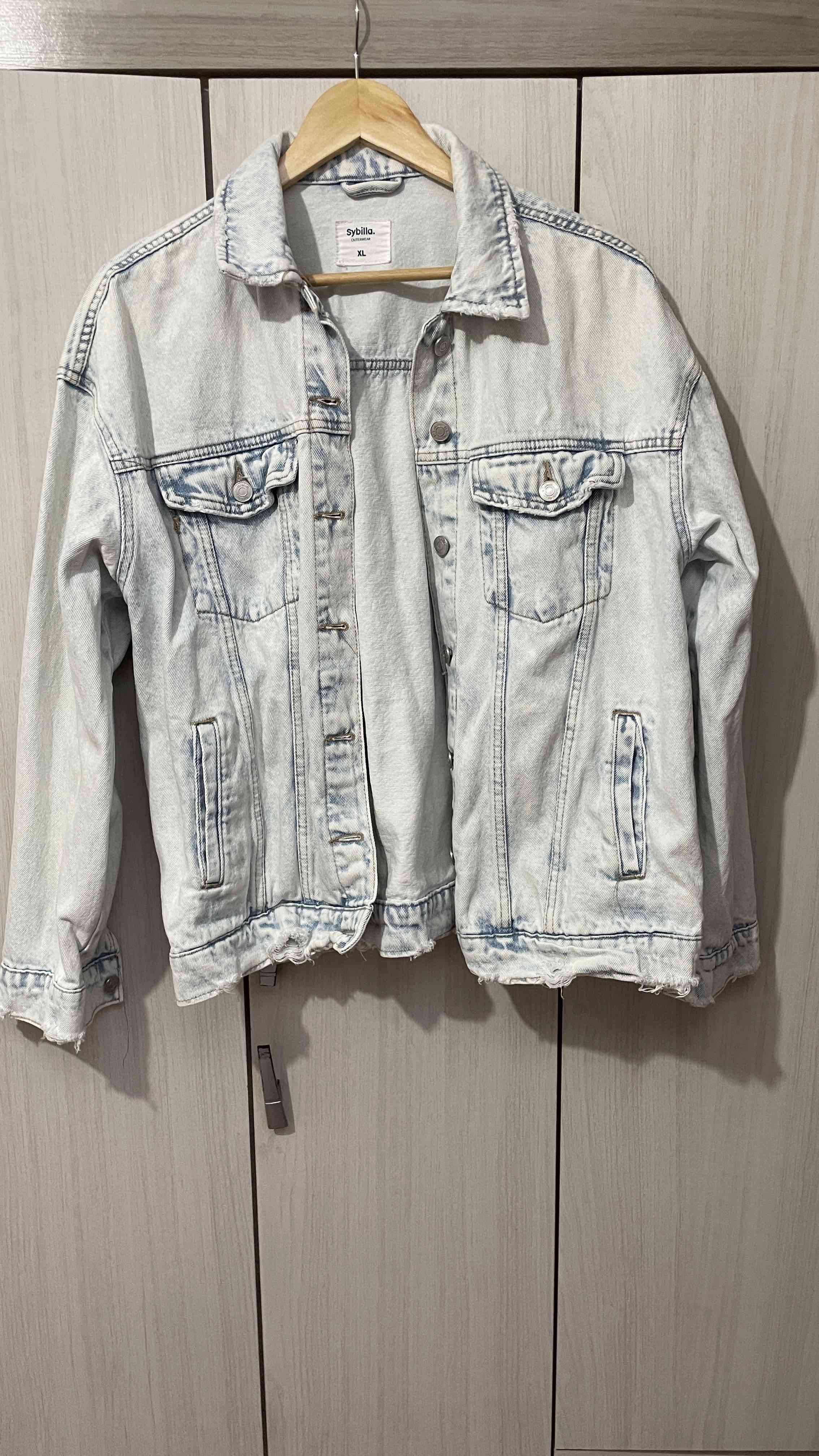 Chaqueta de mezclilla en tono claro, ideal para días frescos. En buen estado, lista para usar.