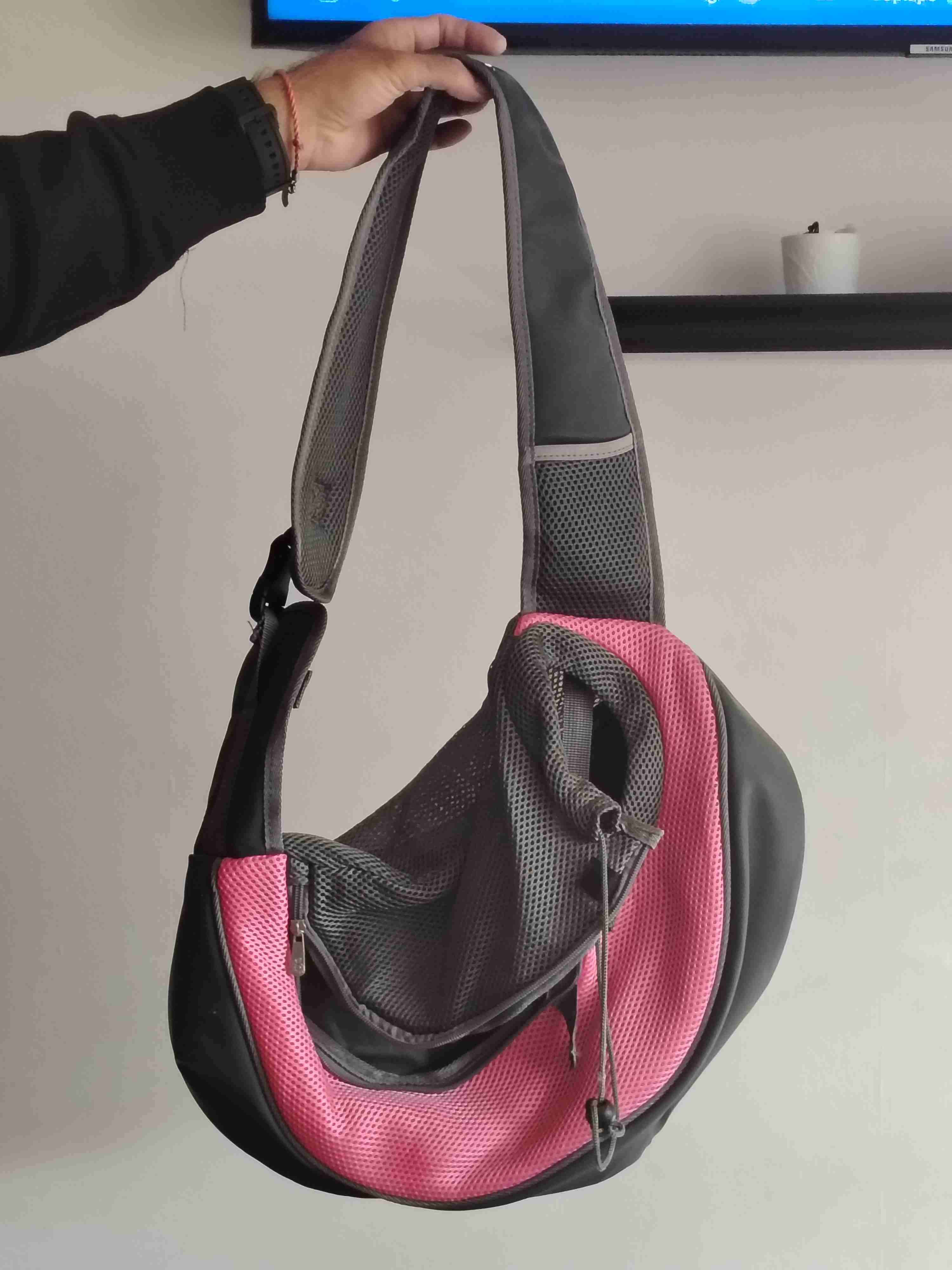 Bolso para mascotas en excelente estado, colores rosa y gris. Ideal para llevar a tu perro o gato siempre contigo y seguro.