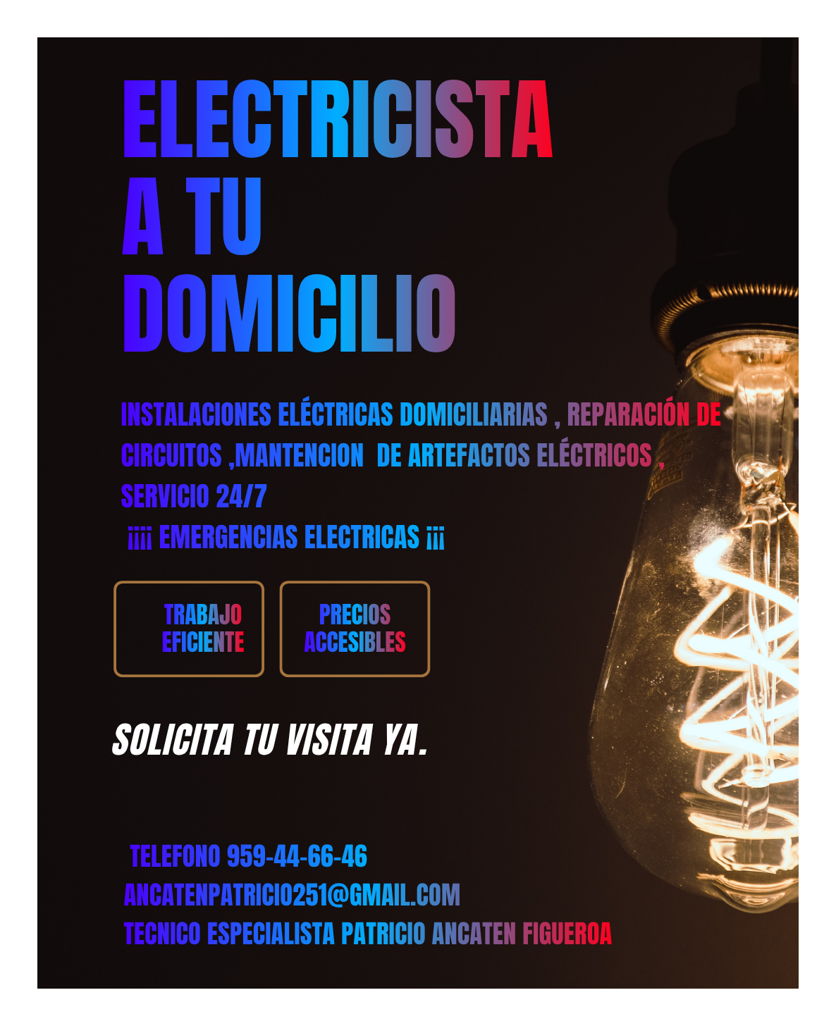 Ofrecemos instalaciones y reparaciones eléctricas en tu hogar. Servicio eficiente y precios accesibles, disponible 24/7.