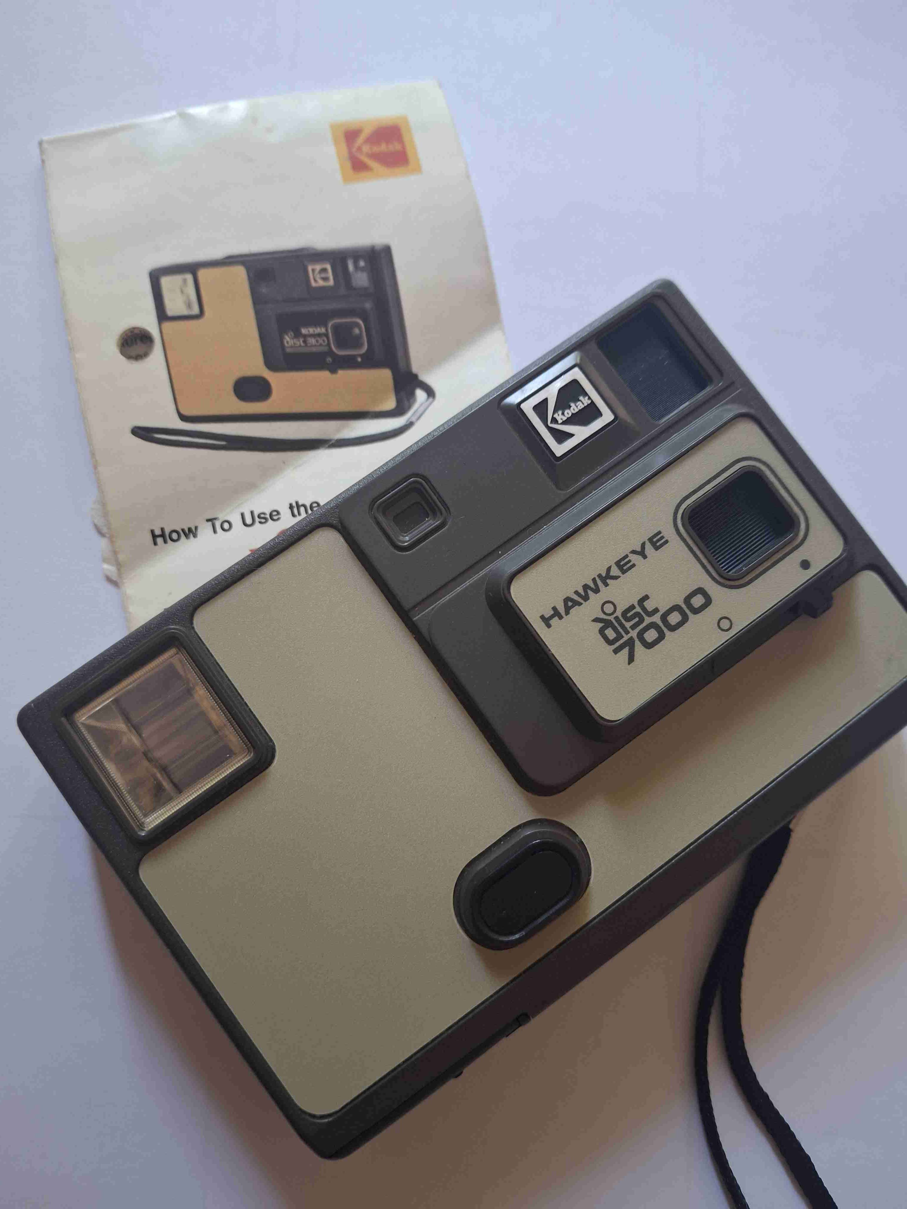 Cámara vintage Kodak Hawkeye Disc 7000 con manual. Ideal para coleccionistas o amantes de la fotografía retro. Nueva y con manual.