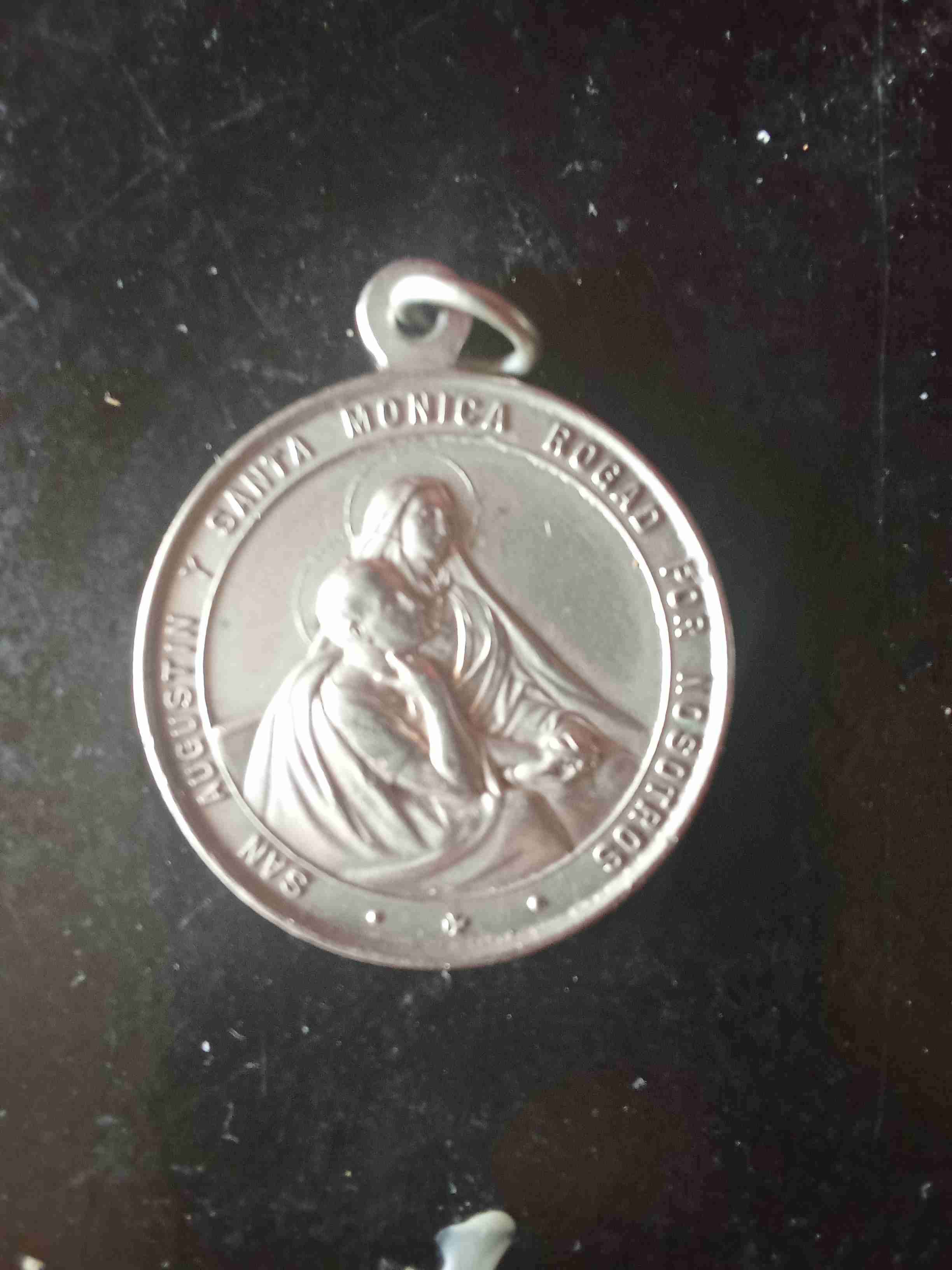 Medalla religiosa con imagen de San Agustín y Santa Mónica. Ideal para devotos o coleccionistas.