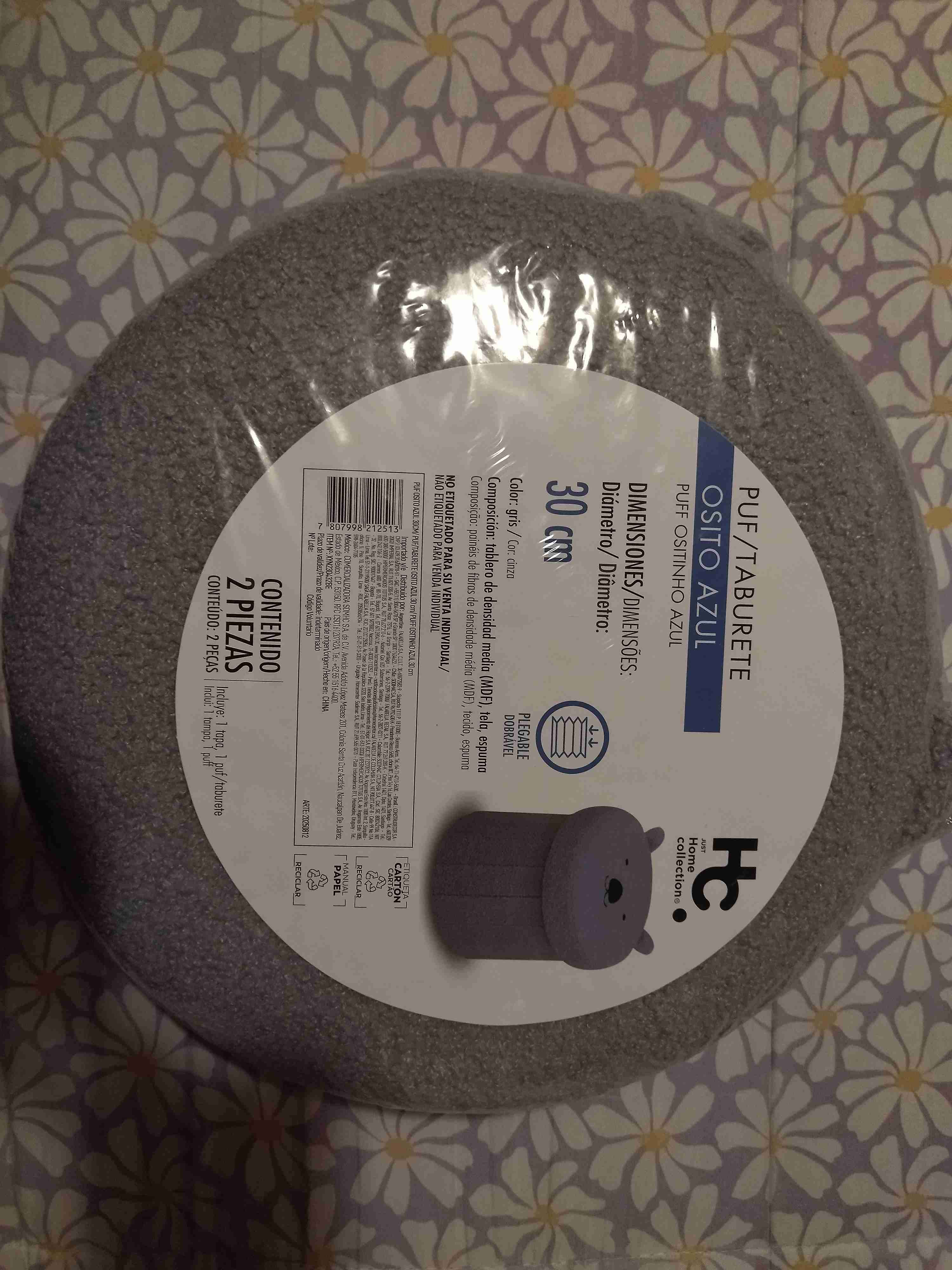 Puf gris y blanco, para niños diseño de oso y chanchito