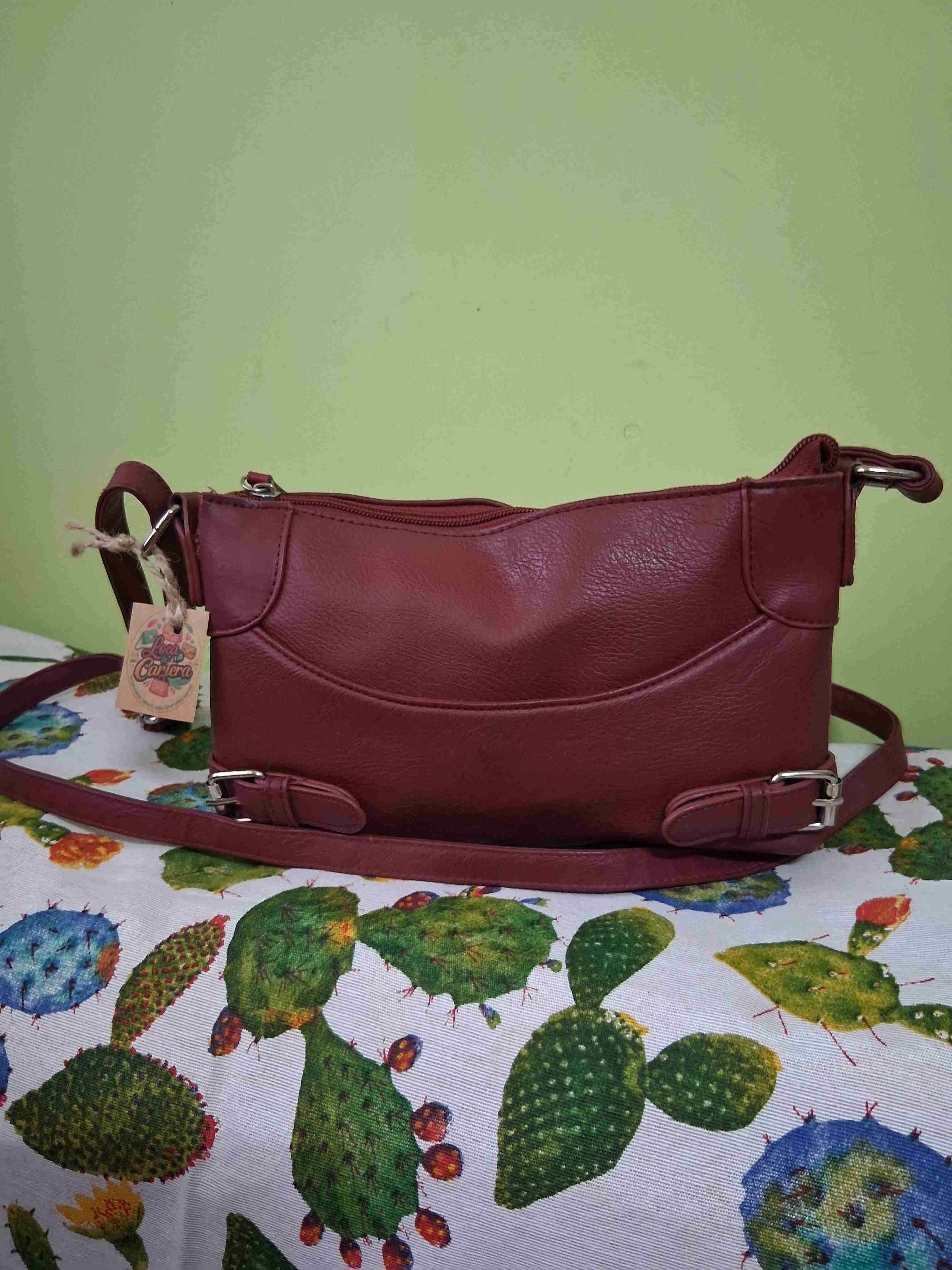 Cartera elegante de color burdeos perfecta para uso diario. En buen estado general.