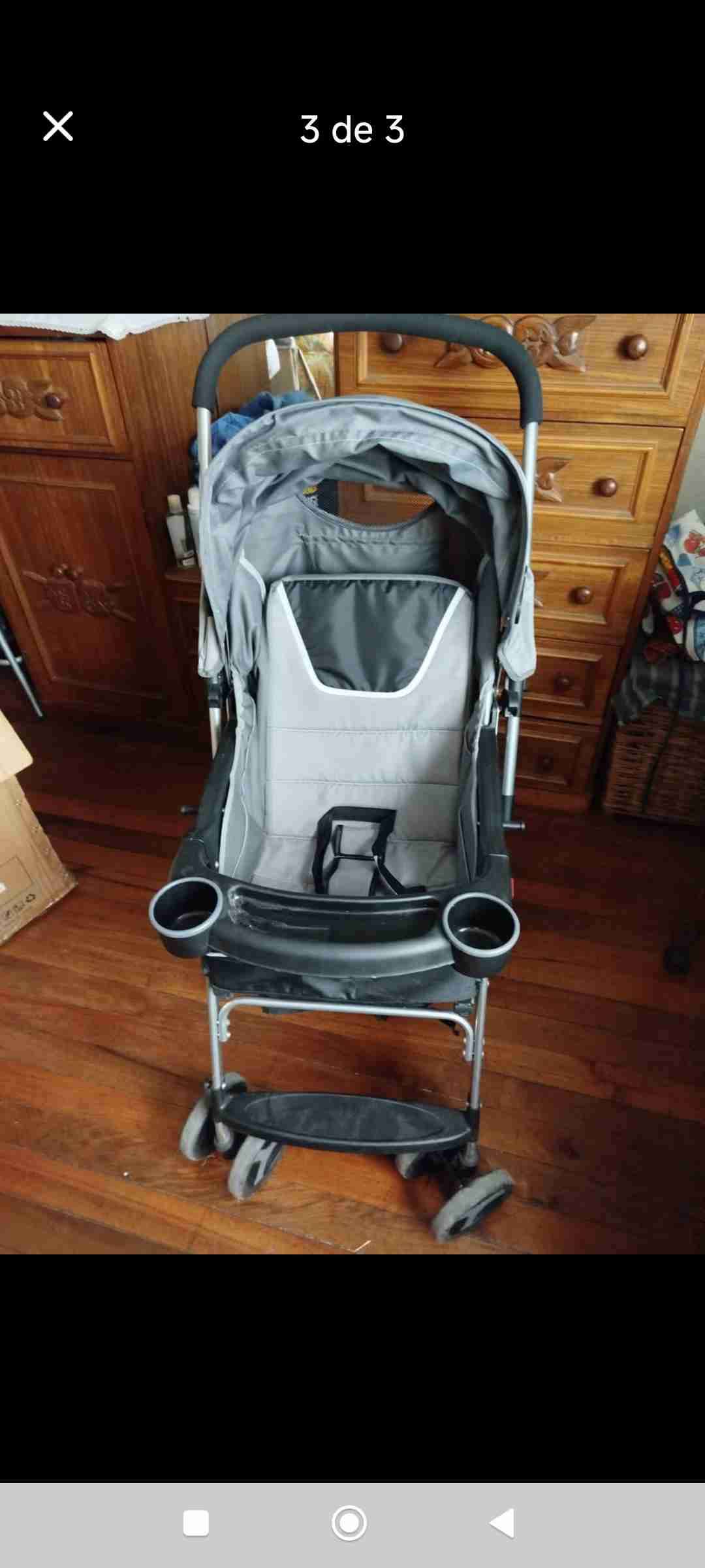 Coche de paseo en buen estado, ideal para paseos diarios. Color gris versátil y práctico.bebesit