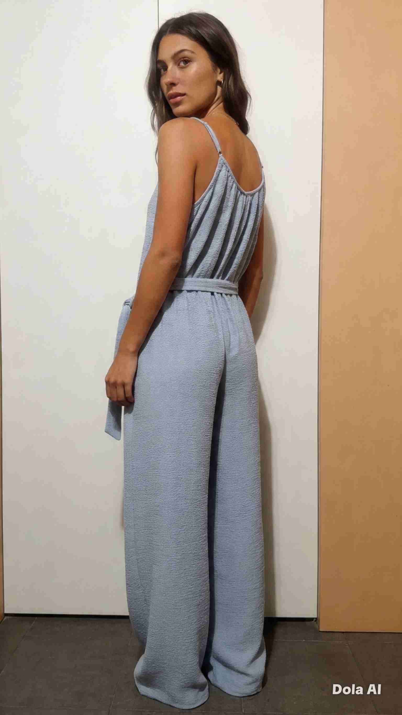 Elegante jumpsuit azul claro, perfecto para ocasiones casuales. Tejido liviano y cómodo en buen estado.