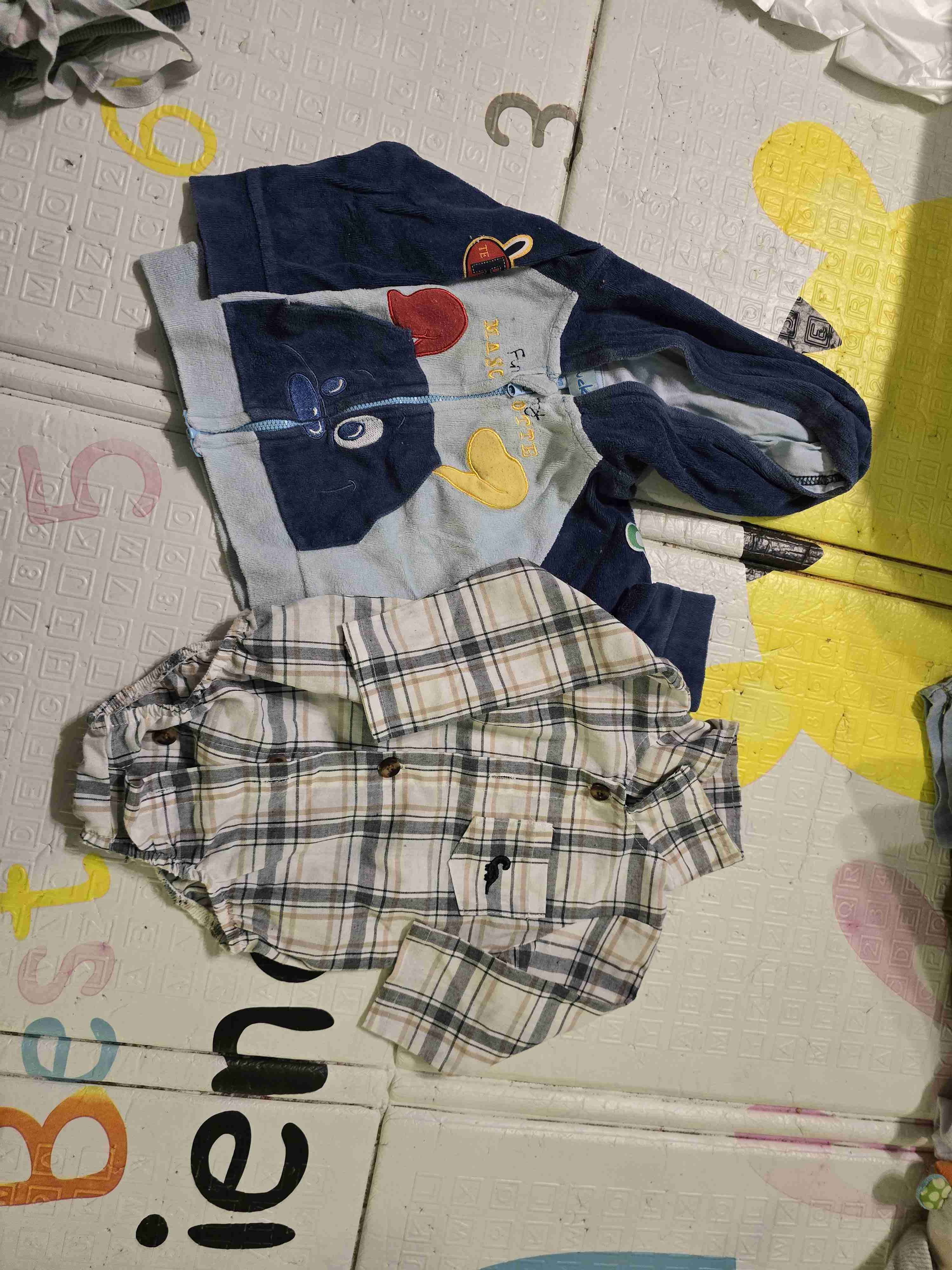 Conjunto para niños incluye camisa de cuadros, polerón con capucha divertido, jardineras de animal, buzo y pantys, además 3 pinamas todo en talla 3-6 meses. Ideal para uso diario y salidas. Buen estado, algunos signos de uso. Talla 3-6 meses $2.000 c/u $15.000.- Todo