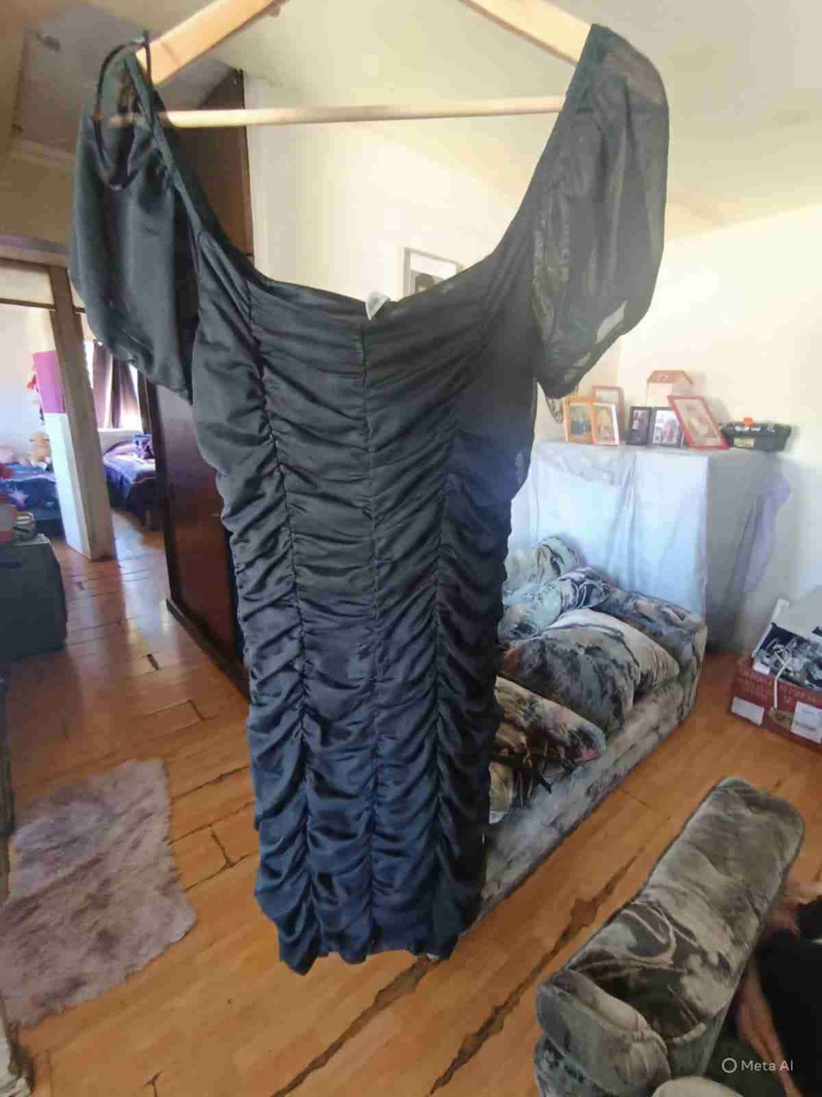 1- vestido largo negro con detalles fruncidos, estilo elegante ideal para eventos nocturnos. Solo 2 usos Talla L 2- enterito negro, talla L un solo uso 3- pantalón rojo de tela, queda hermoso tiene muy poco uso es talla L 4- tops gris y tops negro,.ambos talla L con poco uso, casi nuevos 5- vestido de fiesta, talla S en bien estado Se vende todo junto
