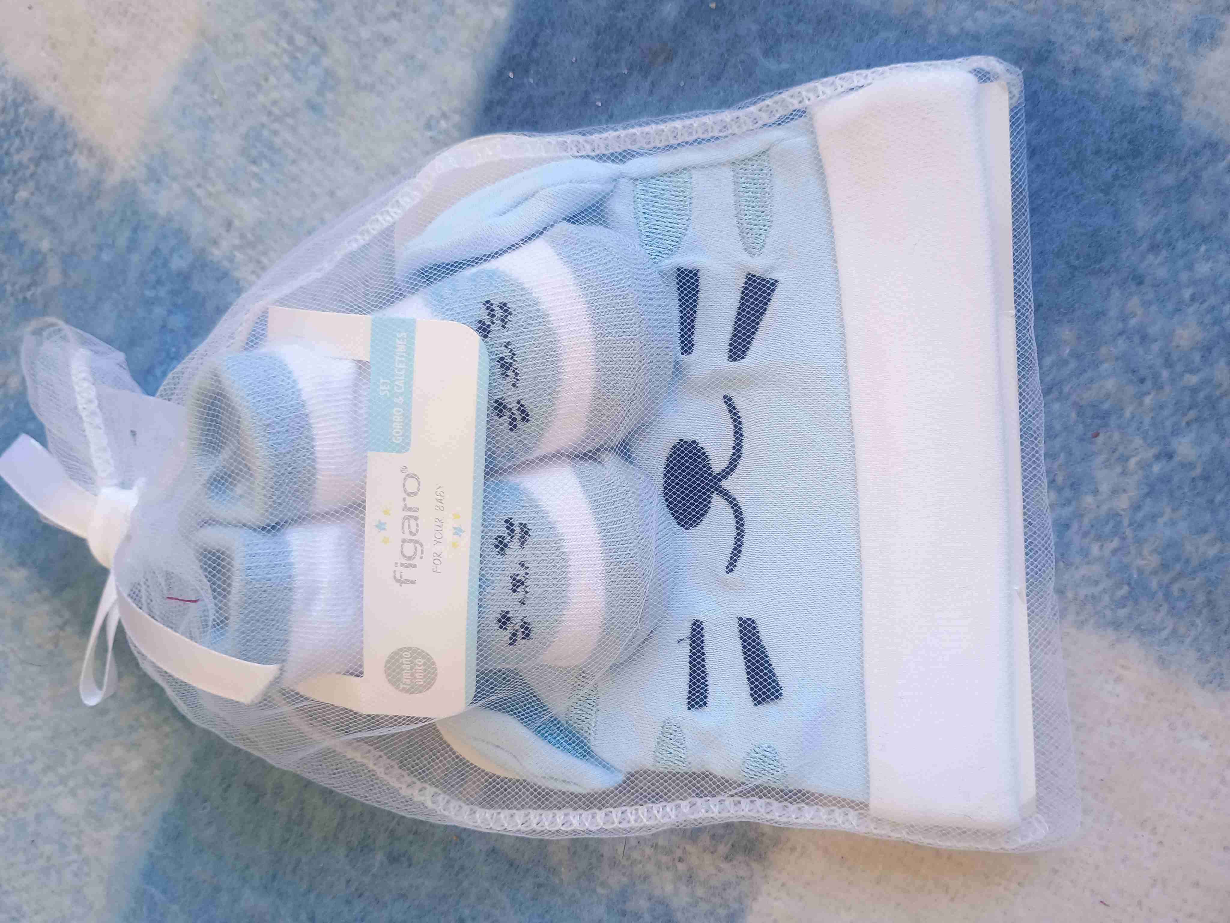 Conjunto adorable de gorro y calcetines para bebé en color azul. Ideal para mantener a tu bebé abrigado con estilo.