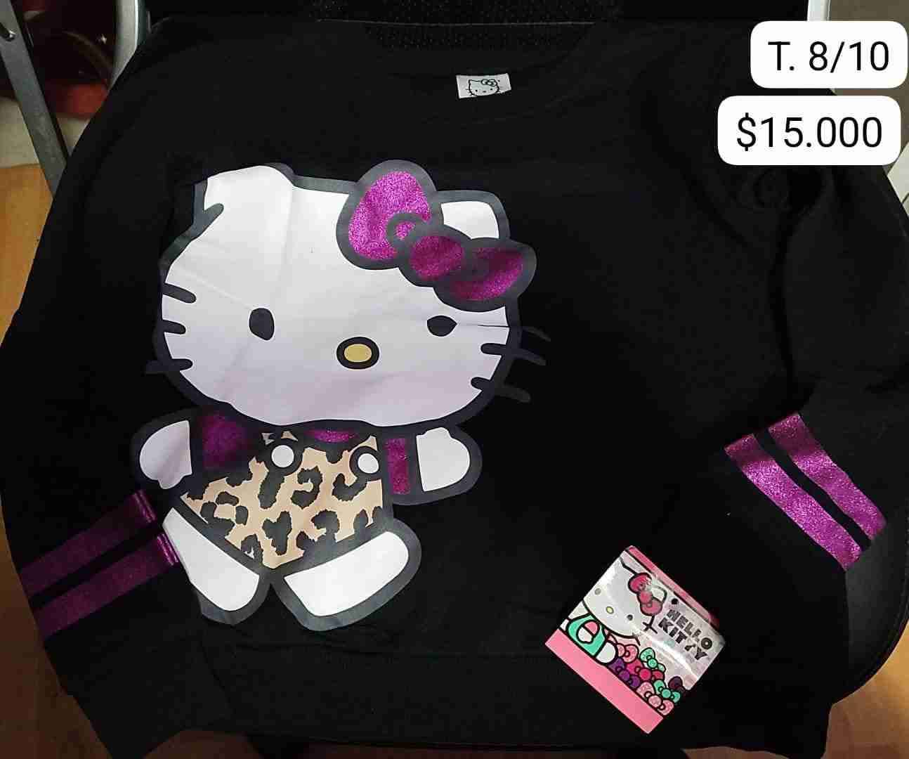 Polerón negro de Hello Kitty con diseño de leopardo y detalles brillantes, en buen estado. Ideal para usar en días fríos.