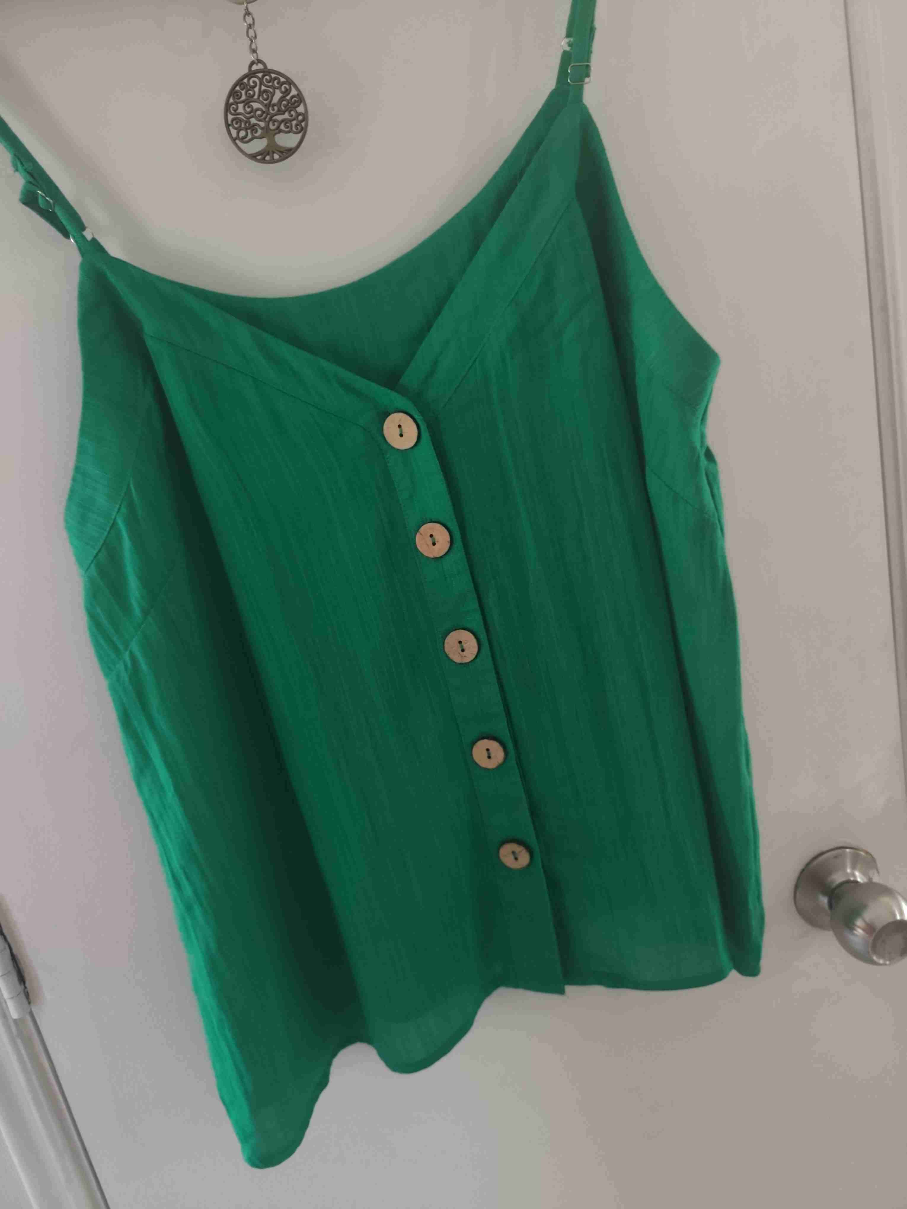 Blusa de tirantes verde con botones de madera. Ideal para look veraniego, en buen estado.