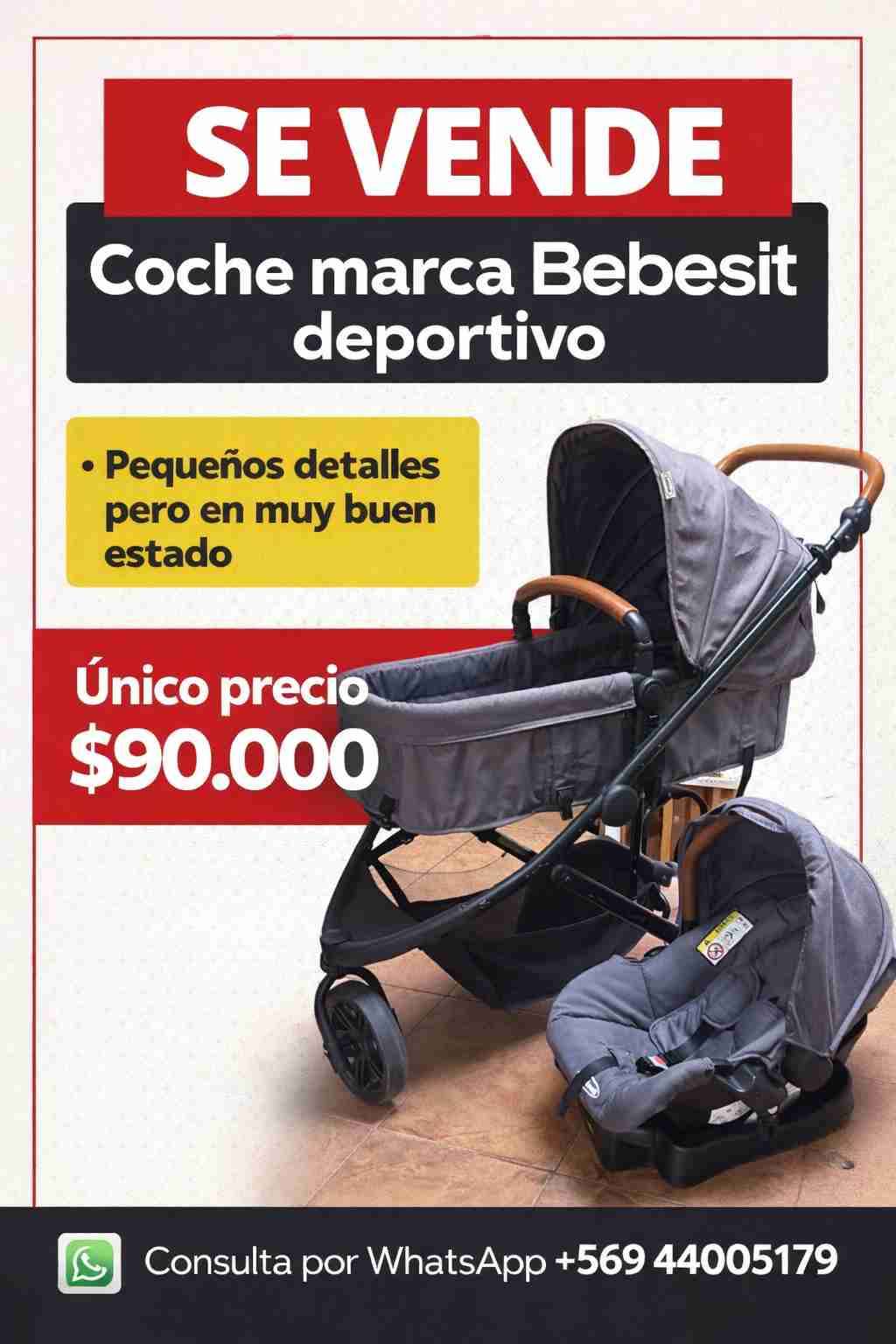 Coche deportivo marca Bebesit en buen estado, ideal para paseos. Presenta pequeños detalles.