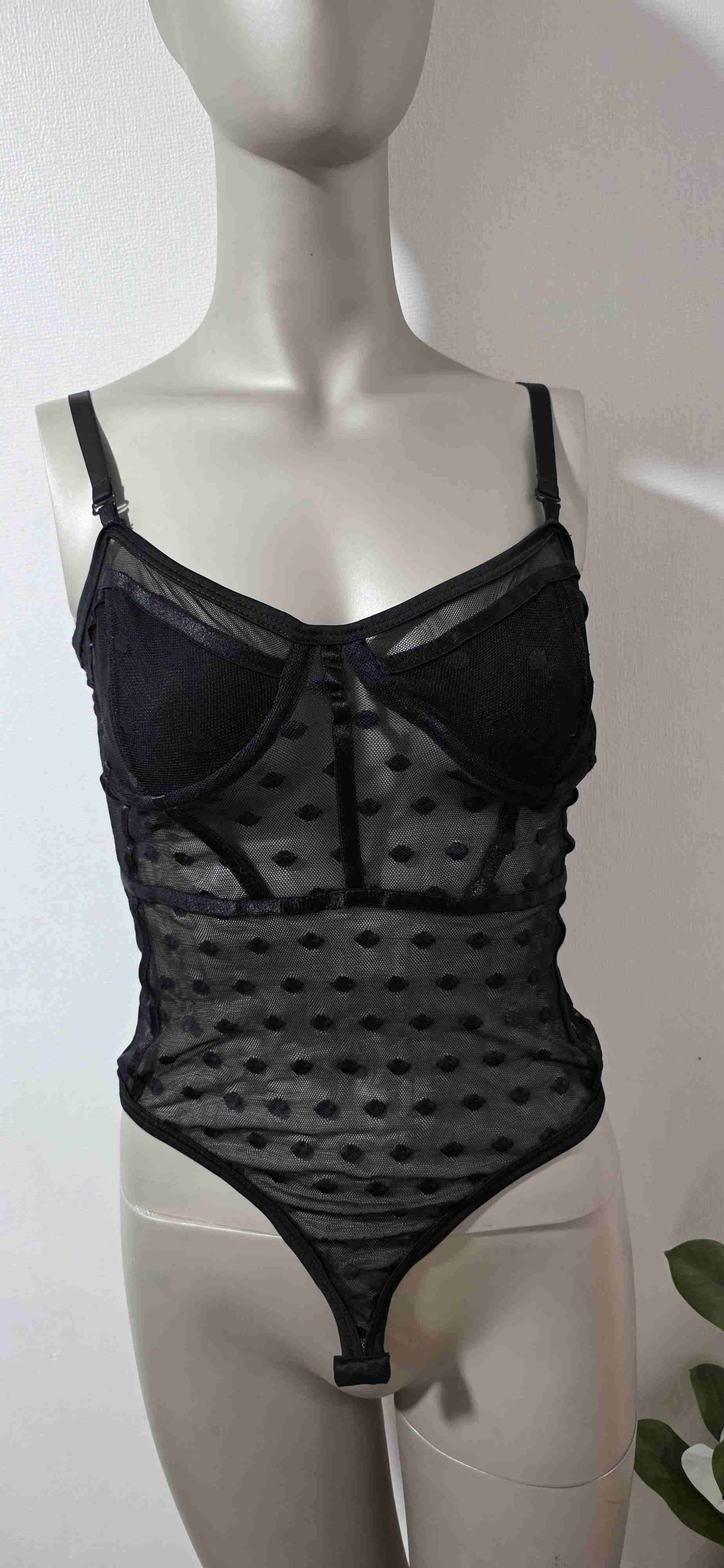 Body negro elegante, perfecto para ocasiones especiales. En buen estado, con detalles en encaje y diseño semitransparente.