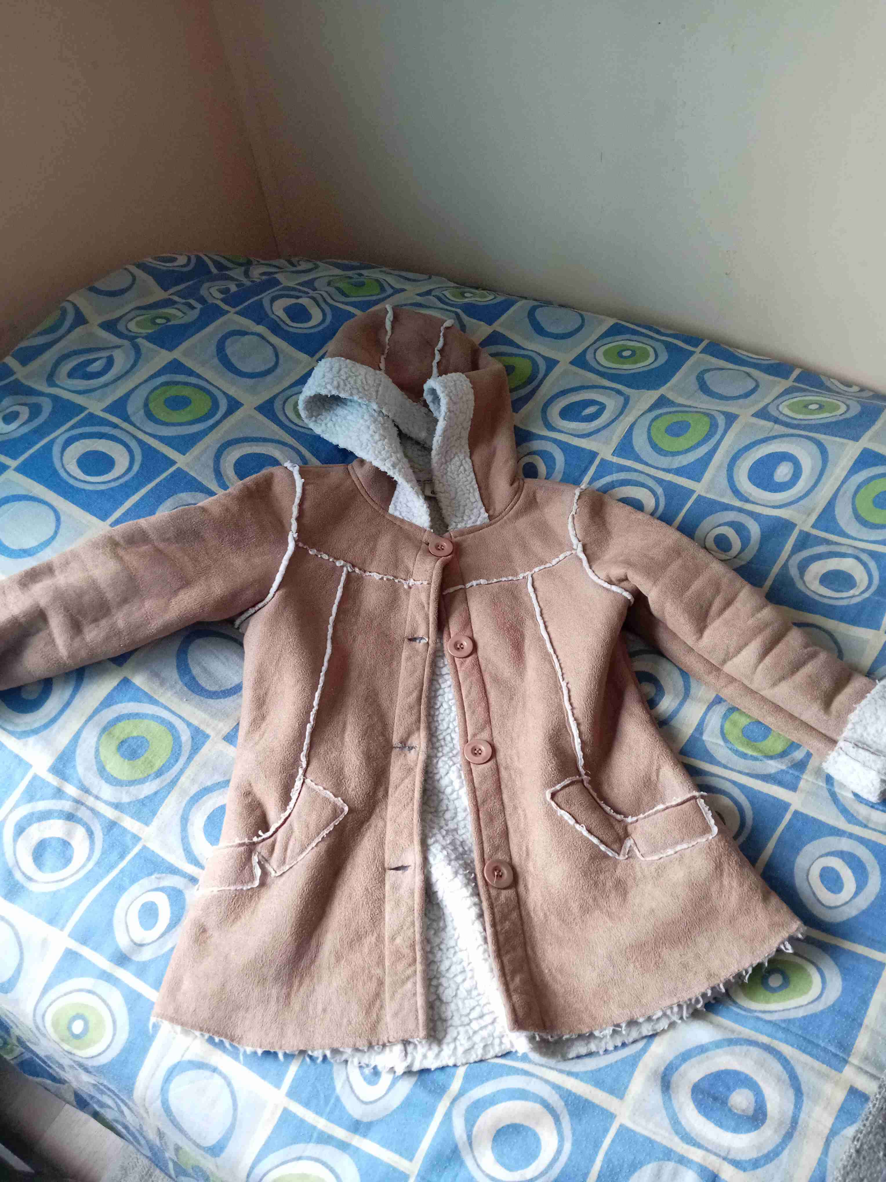 Abrigo marrón con capucha y forro polar, ideal para el invierno. En buen estado general, cálido y cómodo.