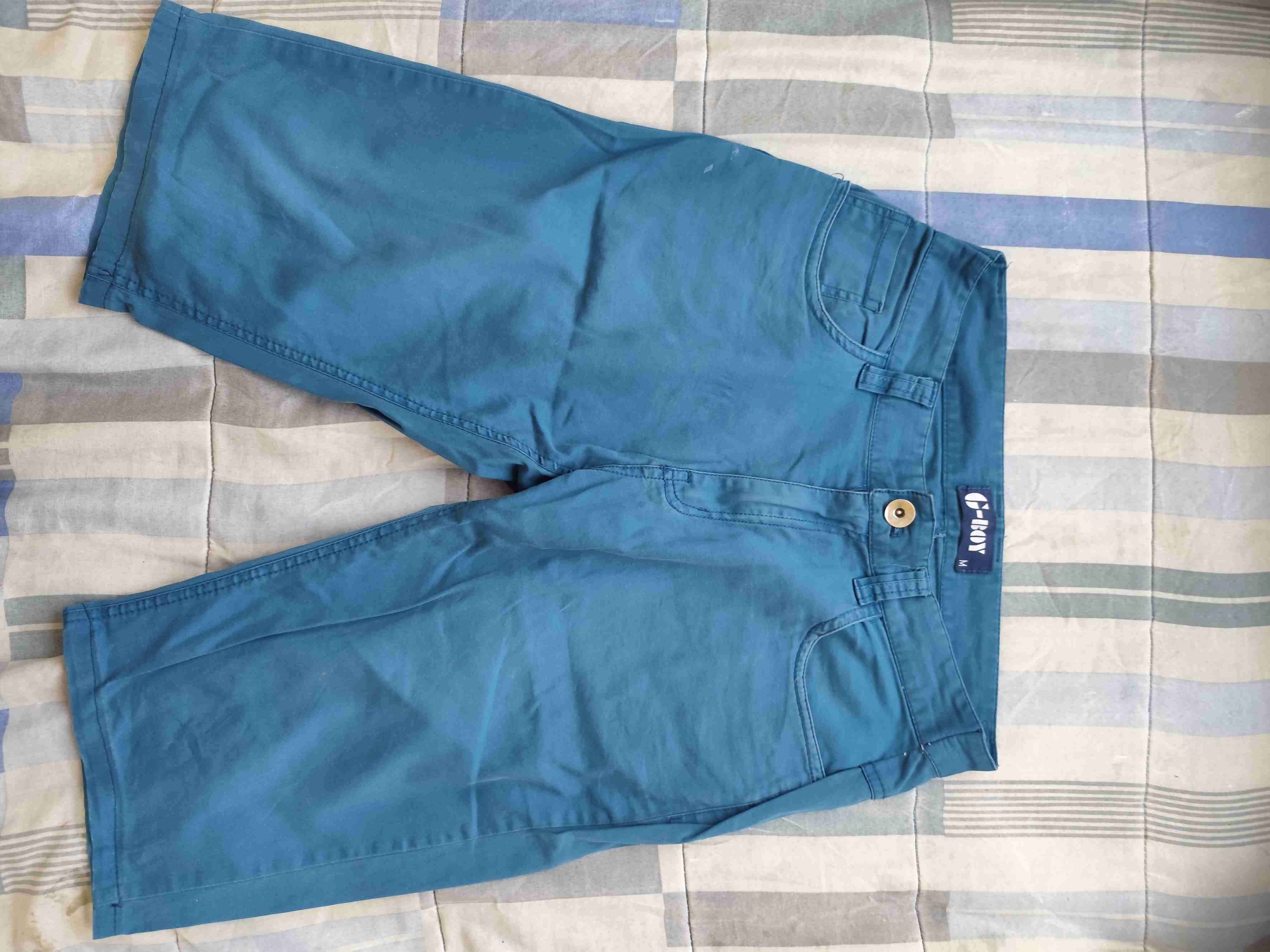 Bermudas casuales azules, perfectas para el verano. En buen estado, con poco uso visible. Ideales para un look relajado.