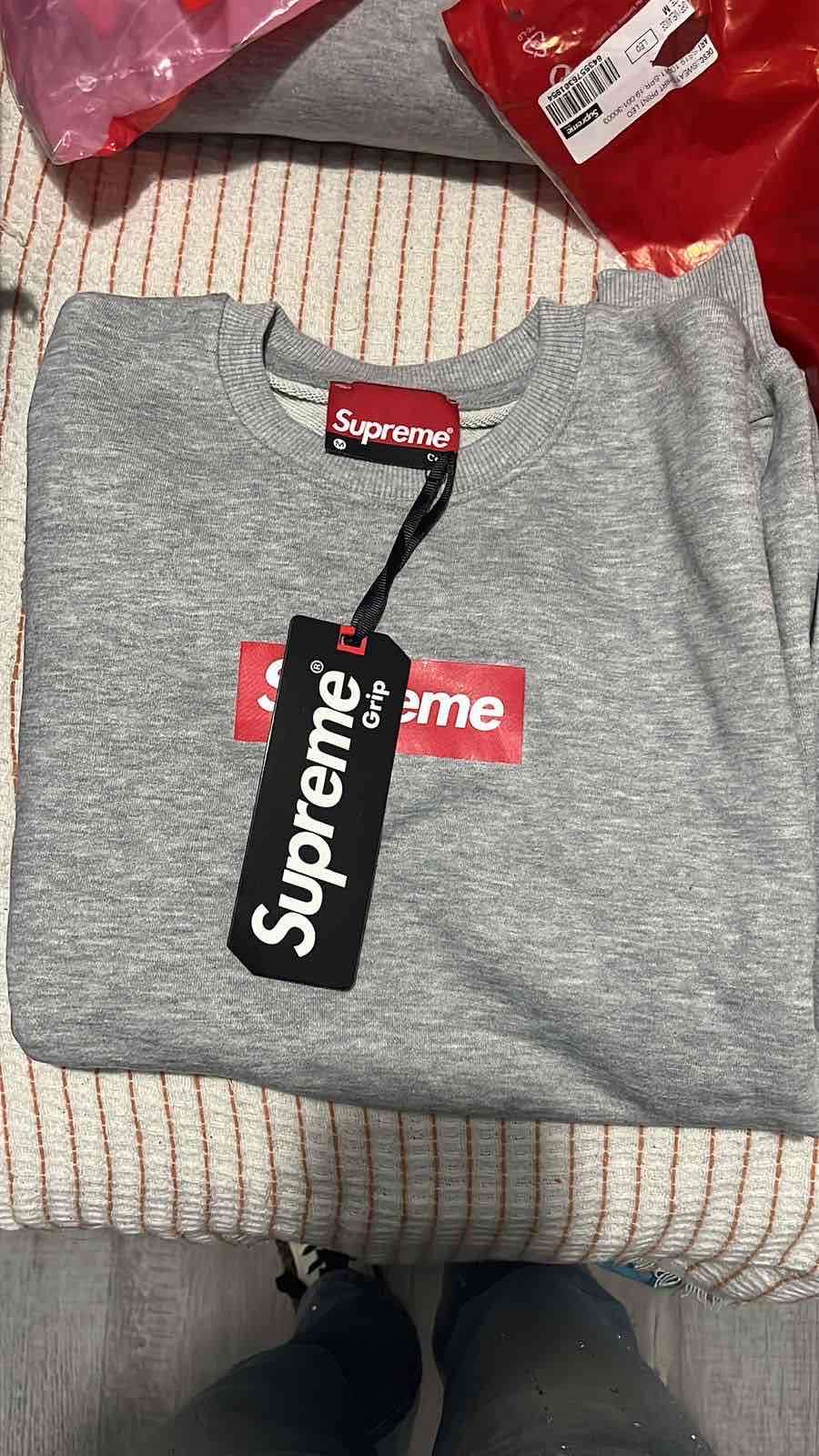 Polerón gris con logo clásico de Supreme. Ideal para un look casual. Estado nuevo con etiquetas.