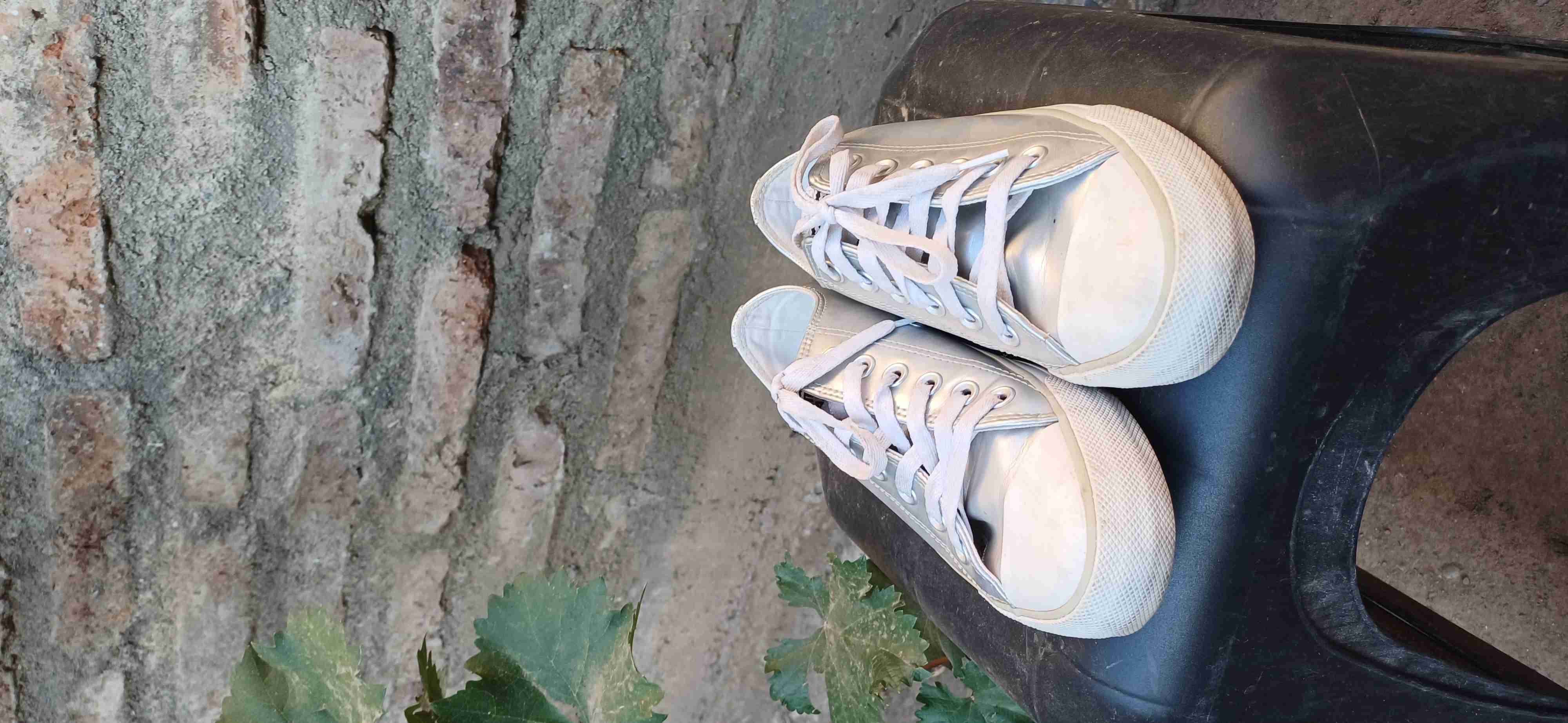 Zapatillas con diseño clásico en color plateado, en buen estado. Perfectas para un look casual diario.