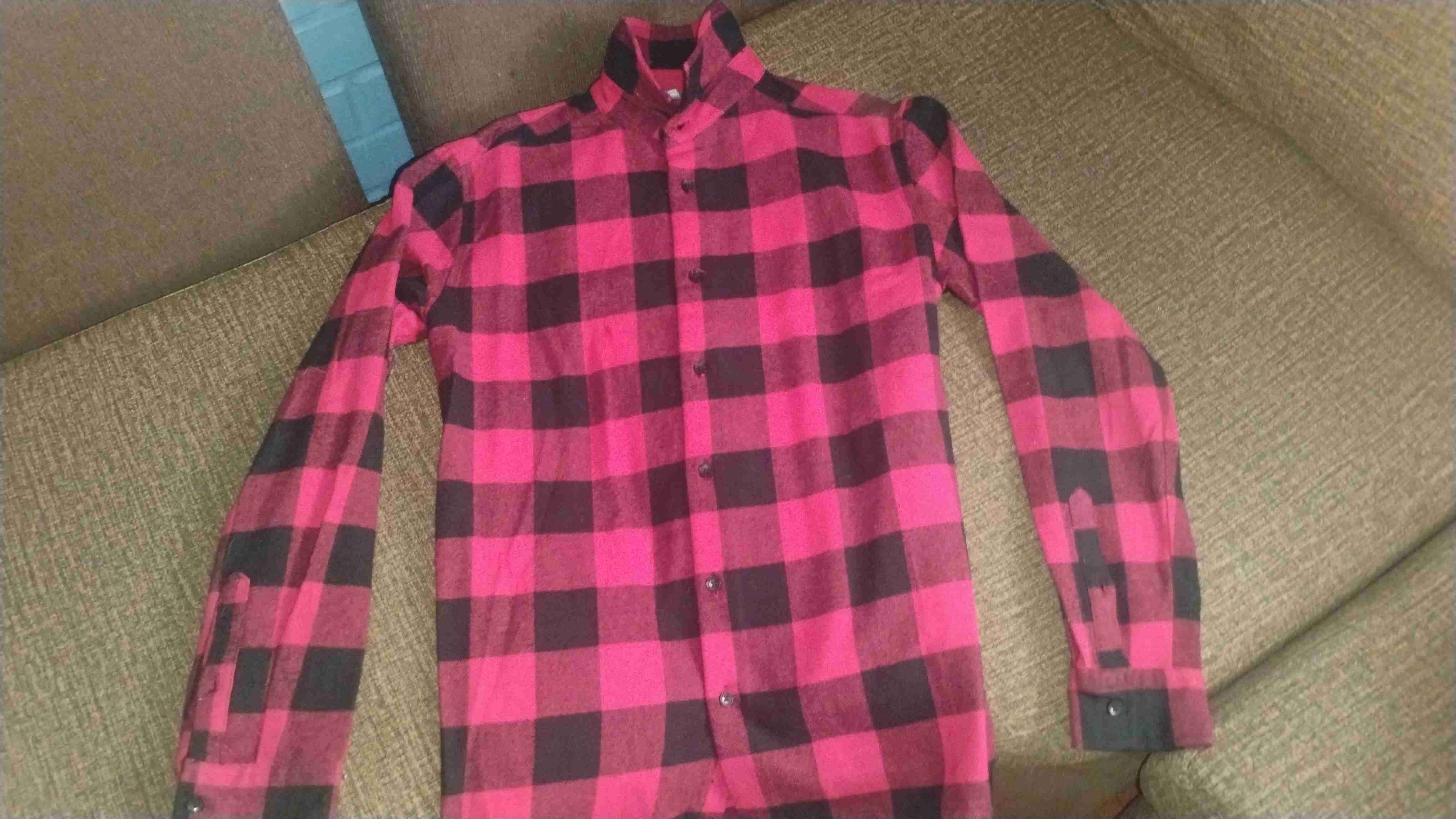 Camisa de franela con diseño a cuadros en rojo y negro. Ideal para el invierno, en buen estado.