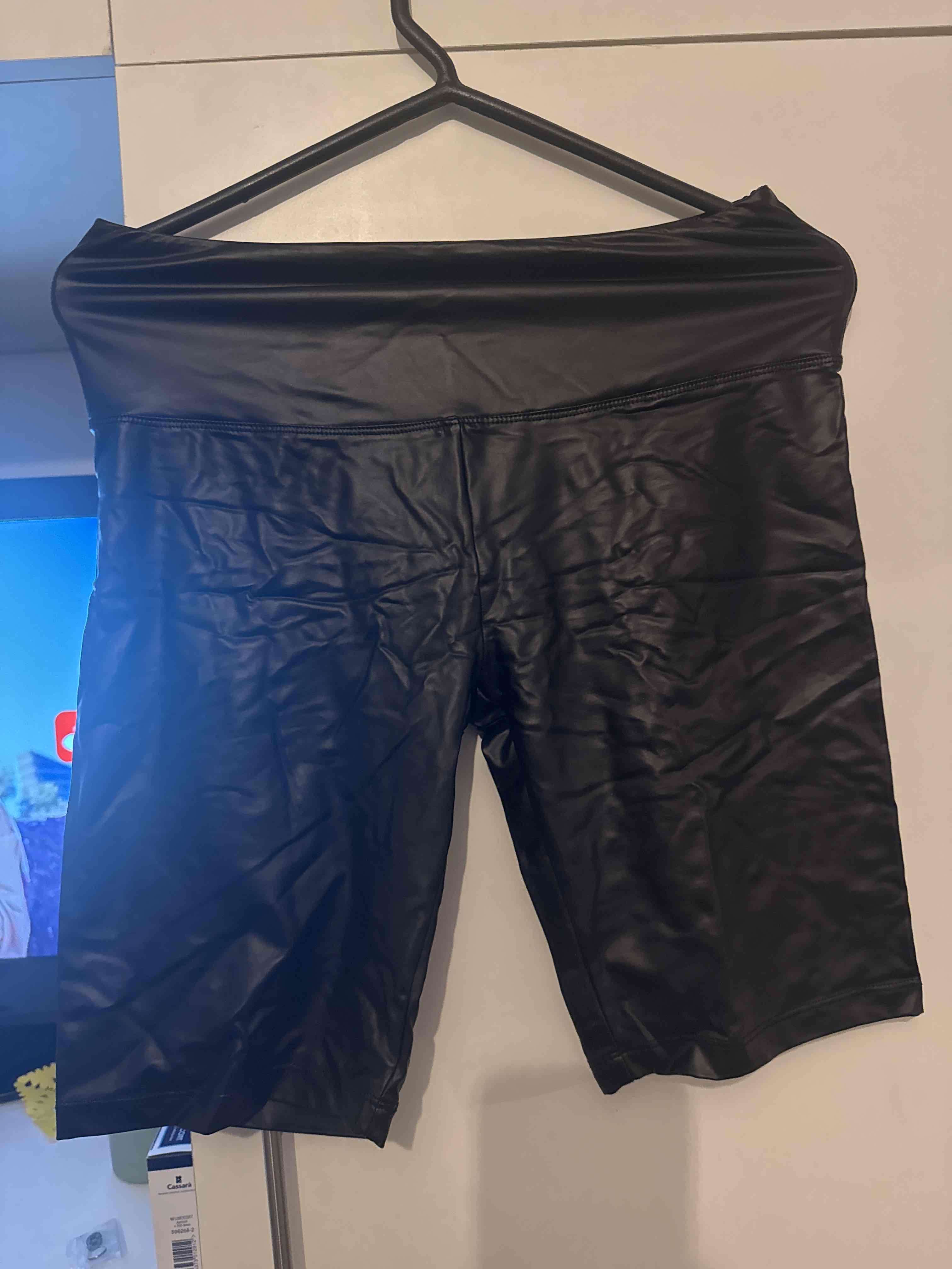 Shorts estilo cuero en color negro, ideal para un look audaz y moderno. En buen estado general.