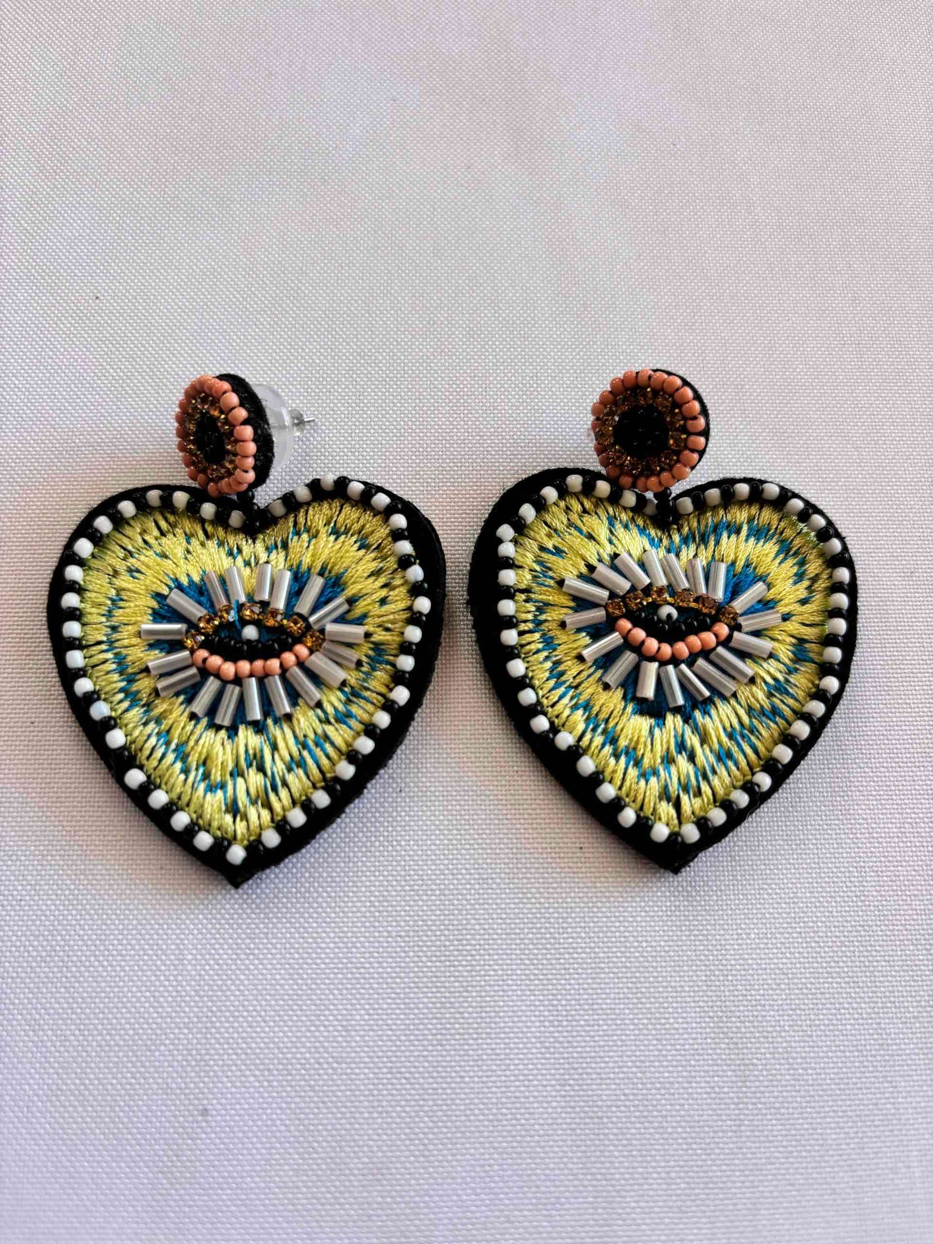 Aros bordados en forma de corazón