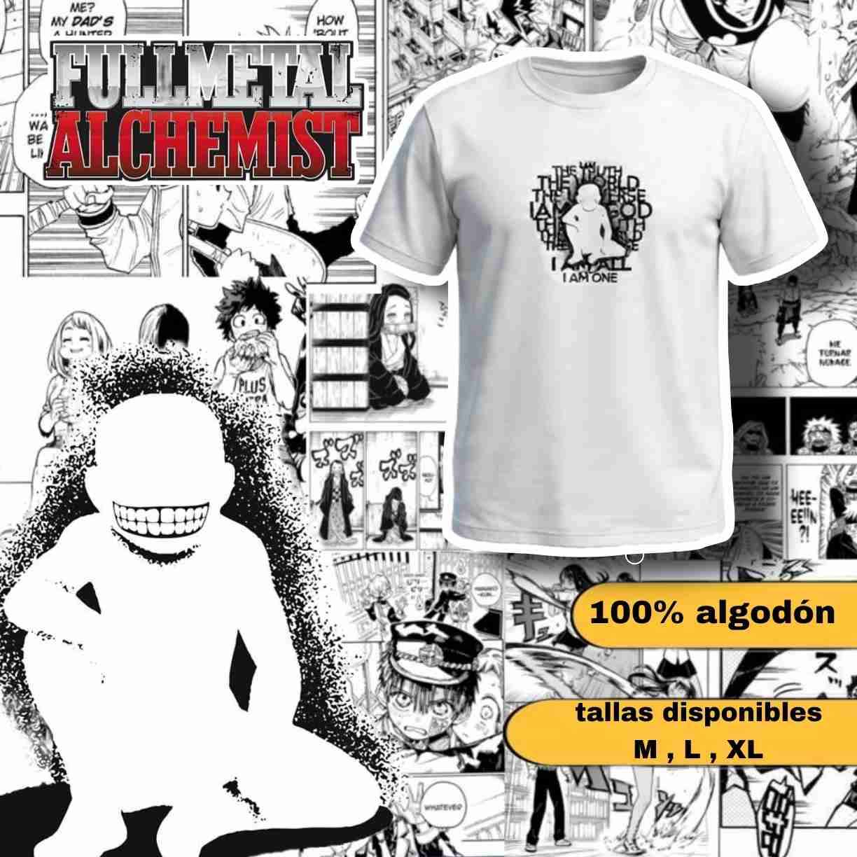 Polera blanca de Fullmetal Alchemist, ideal para fanáticos del anime. Hecha de algodón, cómoda y de buena calidad. Tallas disponibles. S,M,L,XL