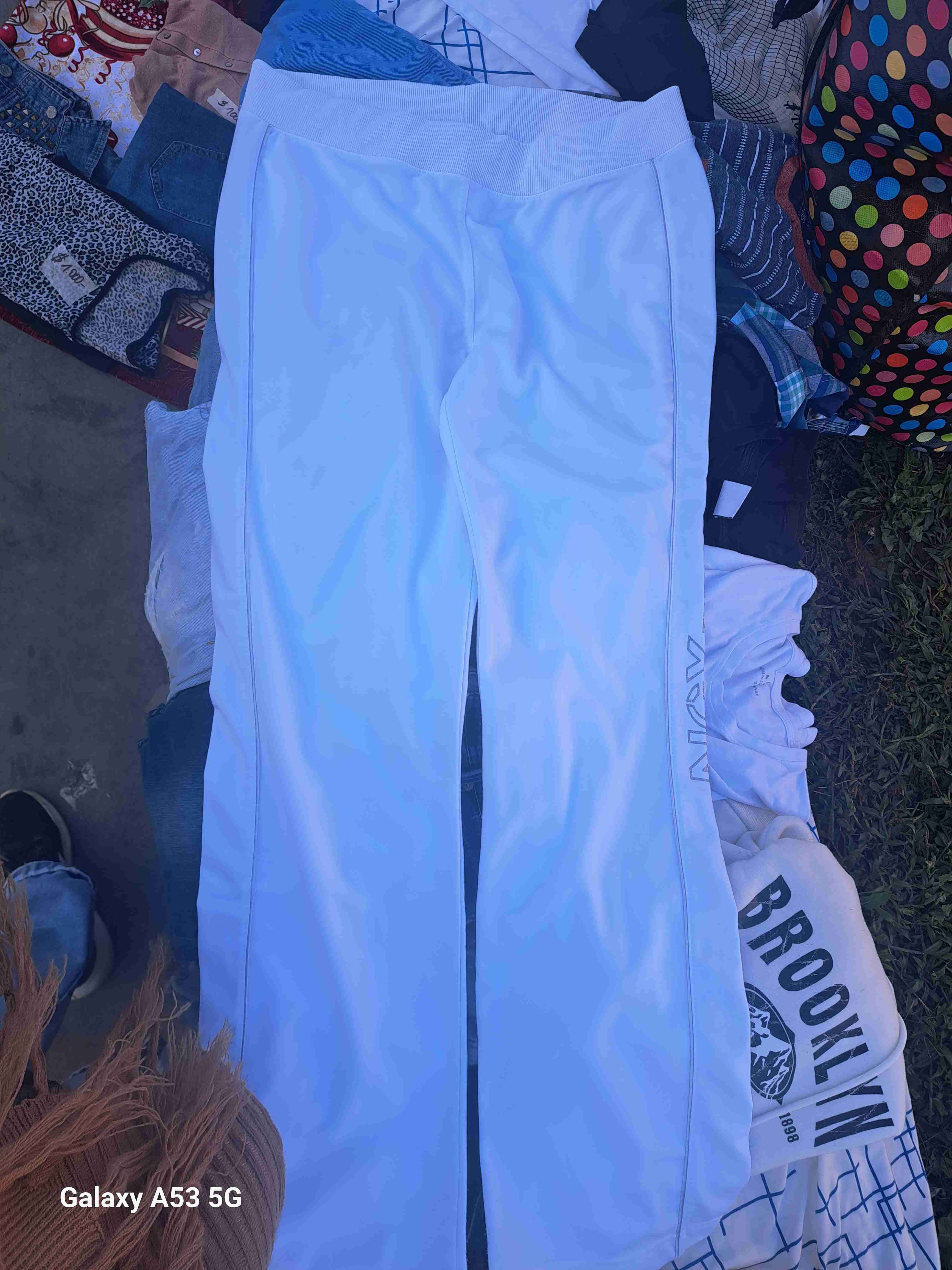Pantalones deportivos de color blanco, ideales para ejercicio o uso casual. En buen estado general.