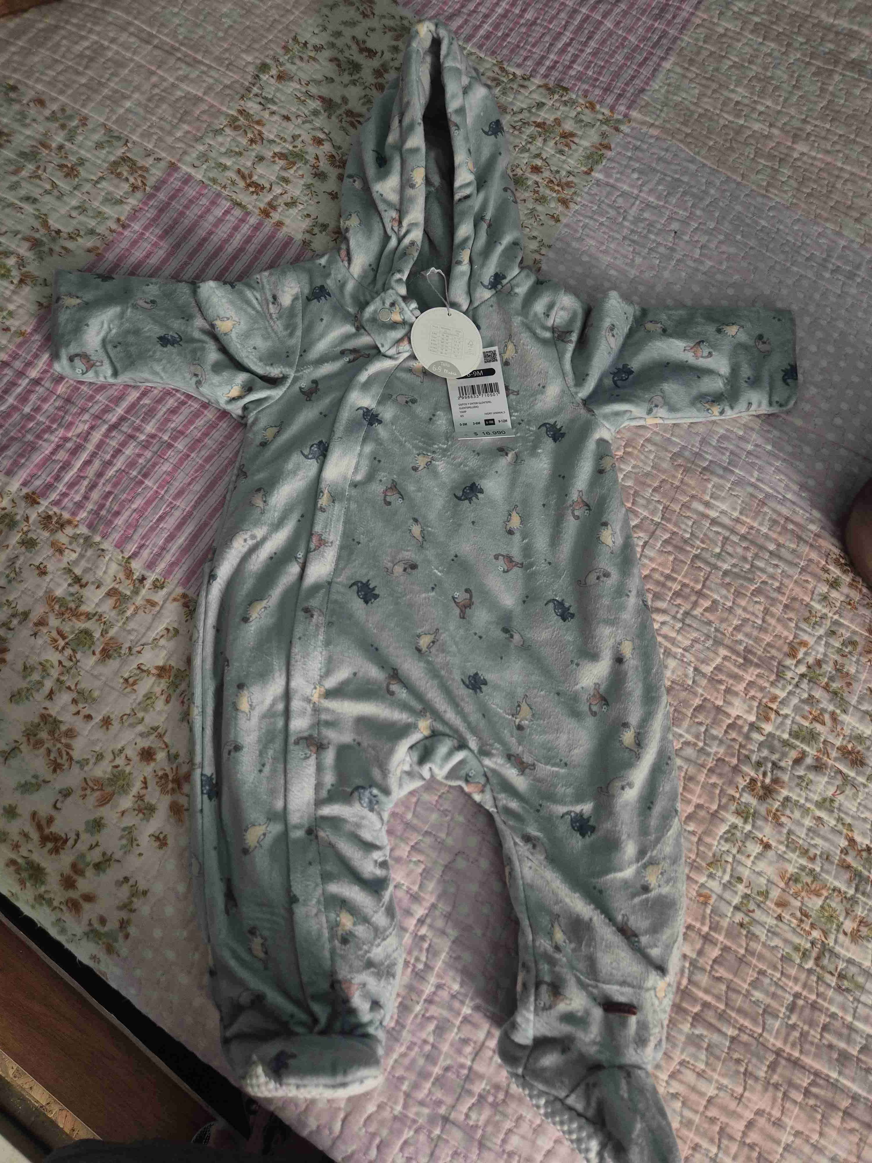 Saco o enterito para bebé, suave y con lindos estampados de dinosaurios. Ideal para mantener calentito a tu bebé en invierno. Por fuera de es plush y por dentro algodón acolchado