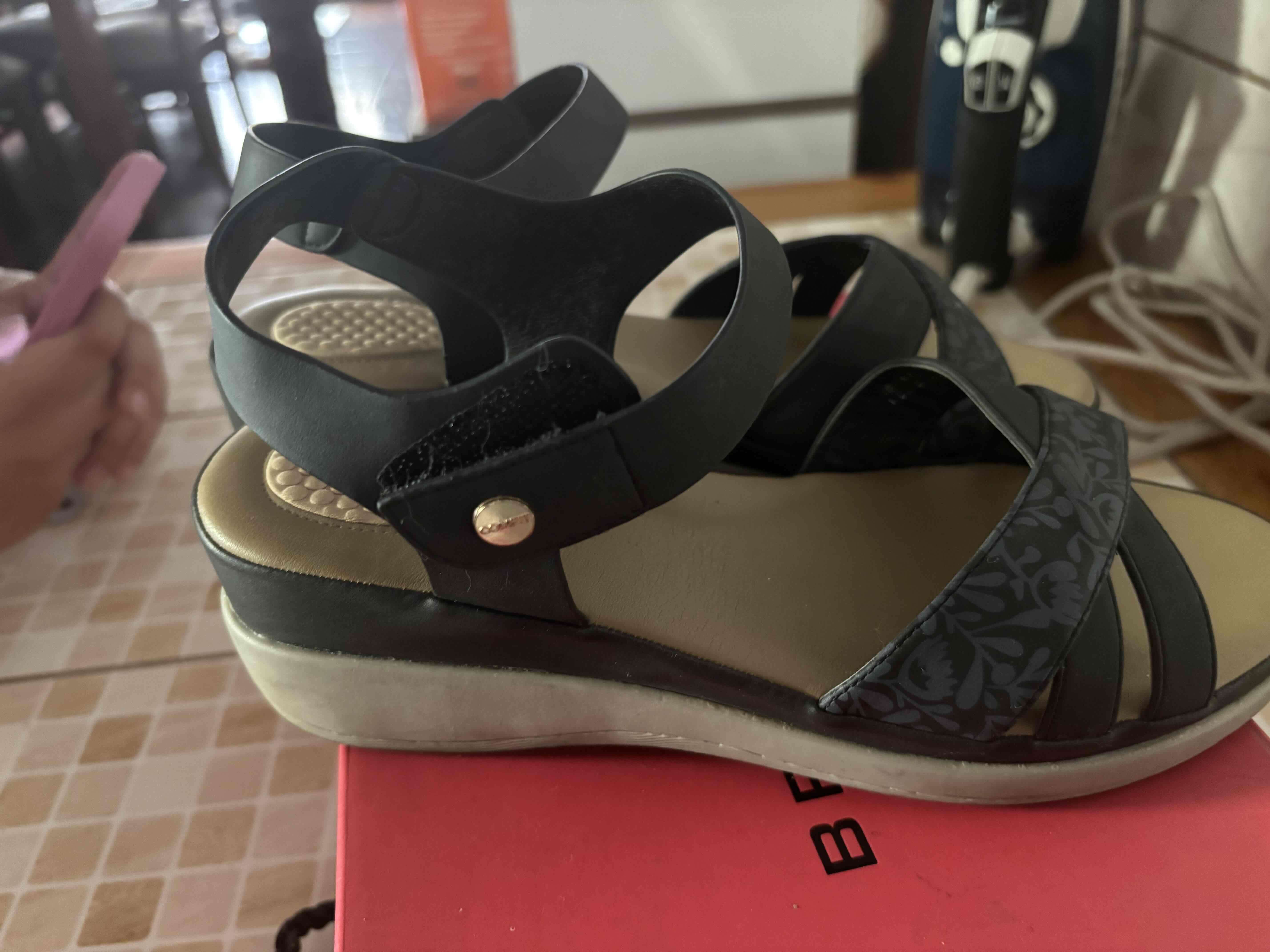 Sandalias negras con plataforma, diseño floral sutil y velcro ajustable. Perfectas para uso diario.