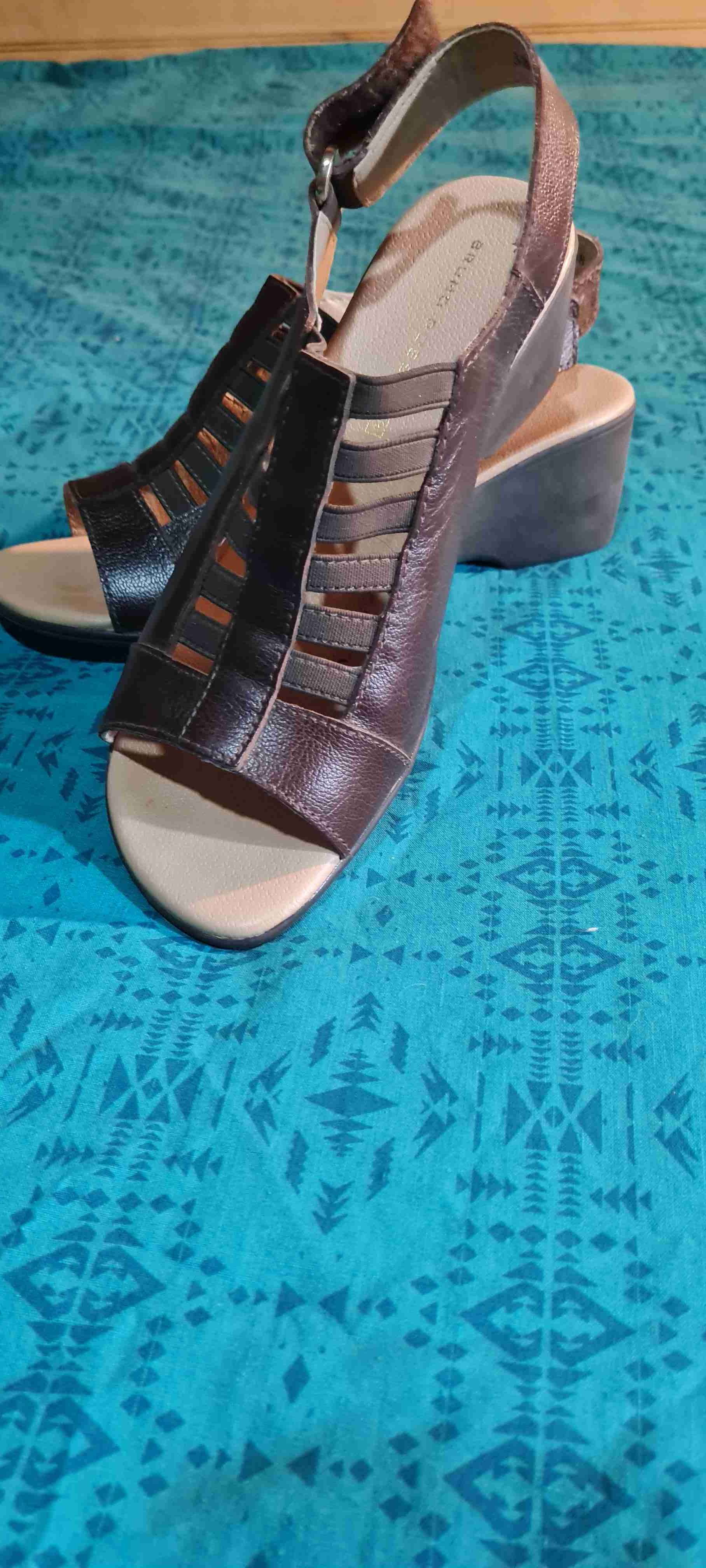 Elegantes sandalias de cuero marrón, perfectas para ocasiones casuales o formales. Buen estado general, con diseño moderno.