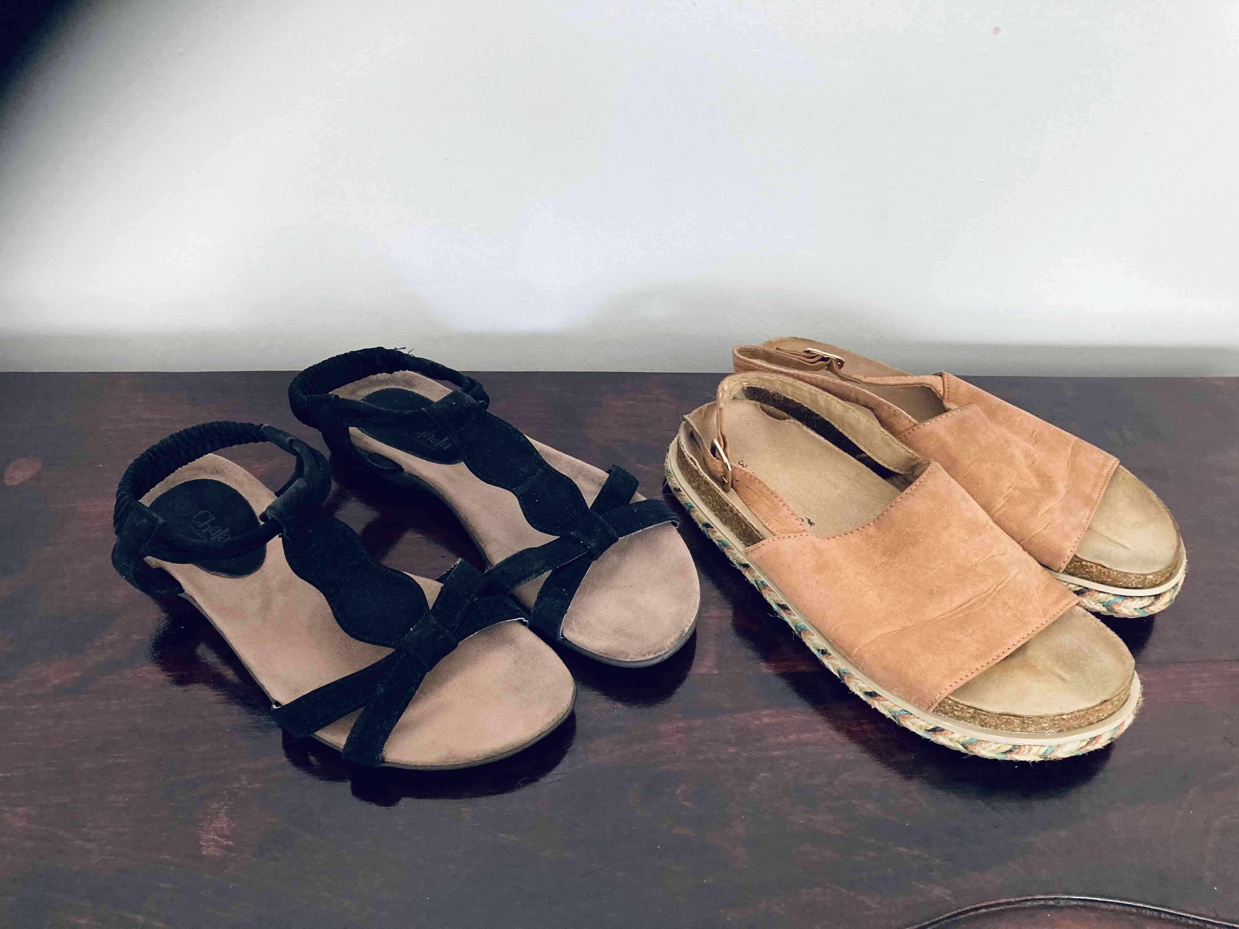 Un par de sandalias ideales para el verano. Ligero desgaste visible, pero en buen estado. Eco cuero