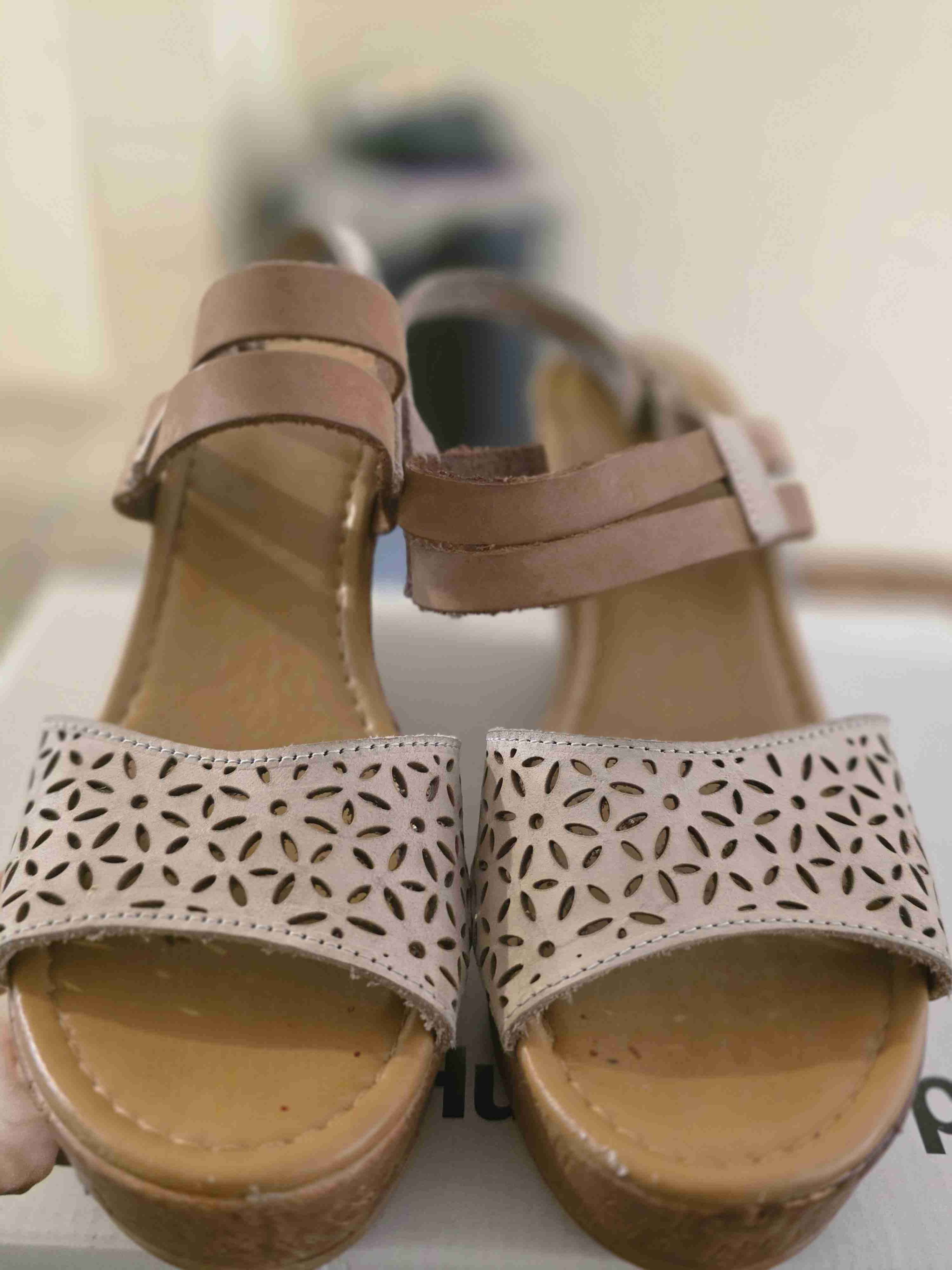 Sandalias en tonos beige con plataforma. Excelente estado N°37.