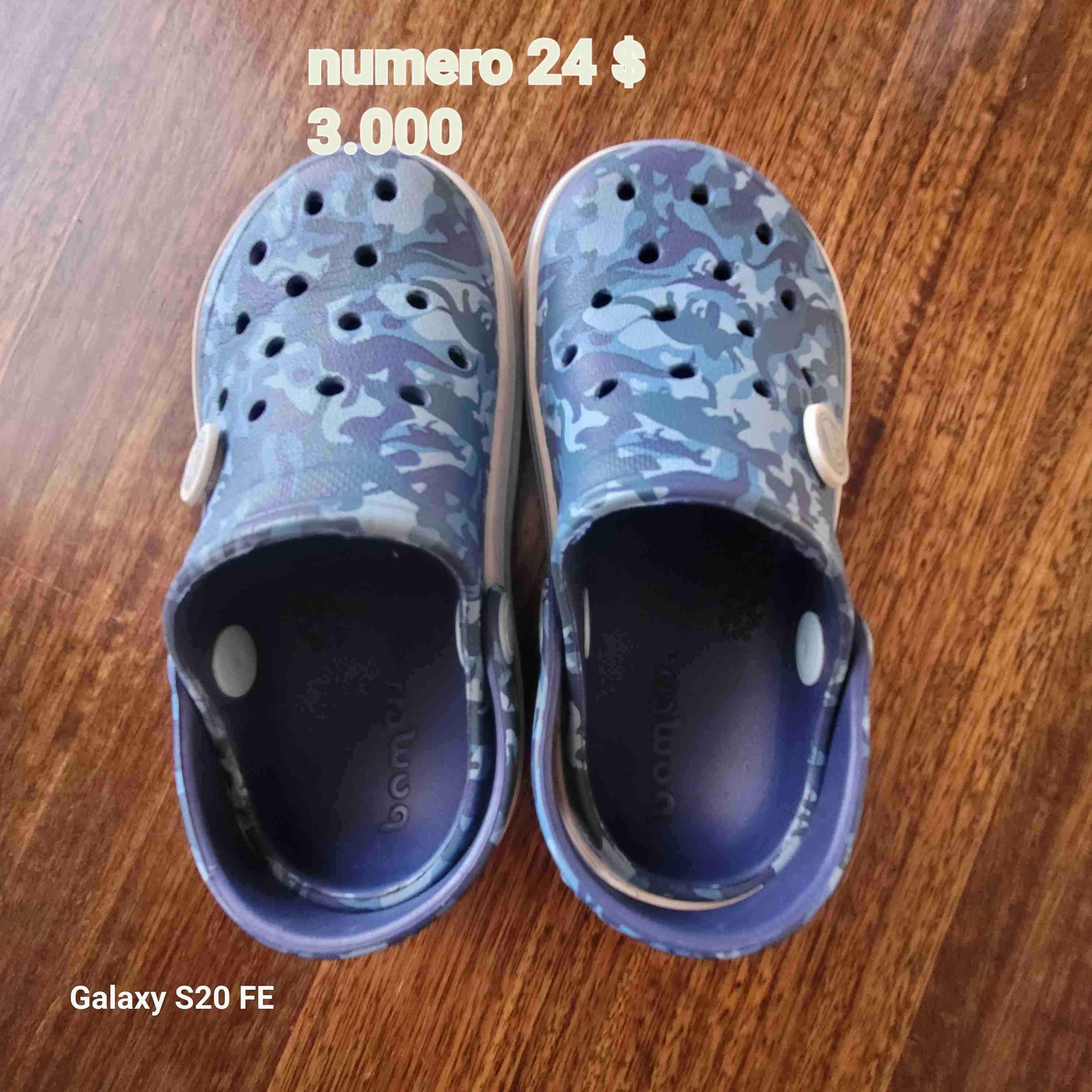 Sandalias tipo Crocs para niños, color azul camuflado. En buen estado, perfectas para el verano.