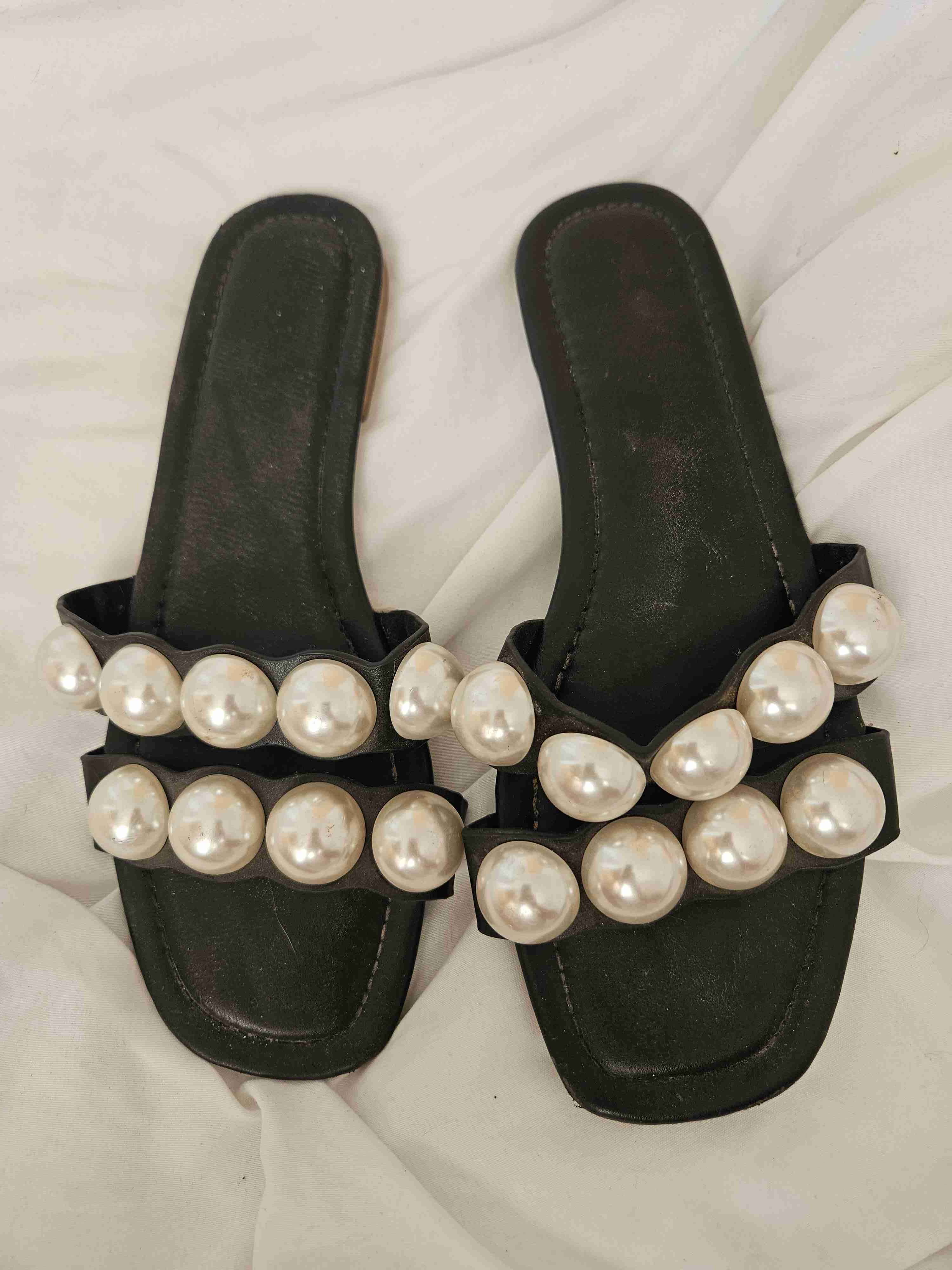 Sandalias mujer negras con perlas blancas. Talla 40