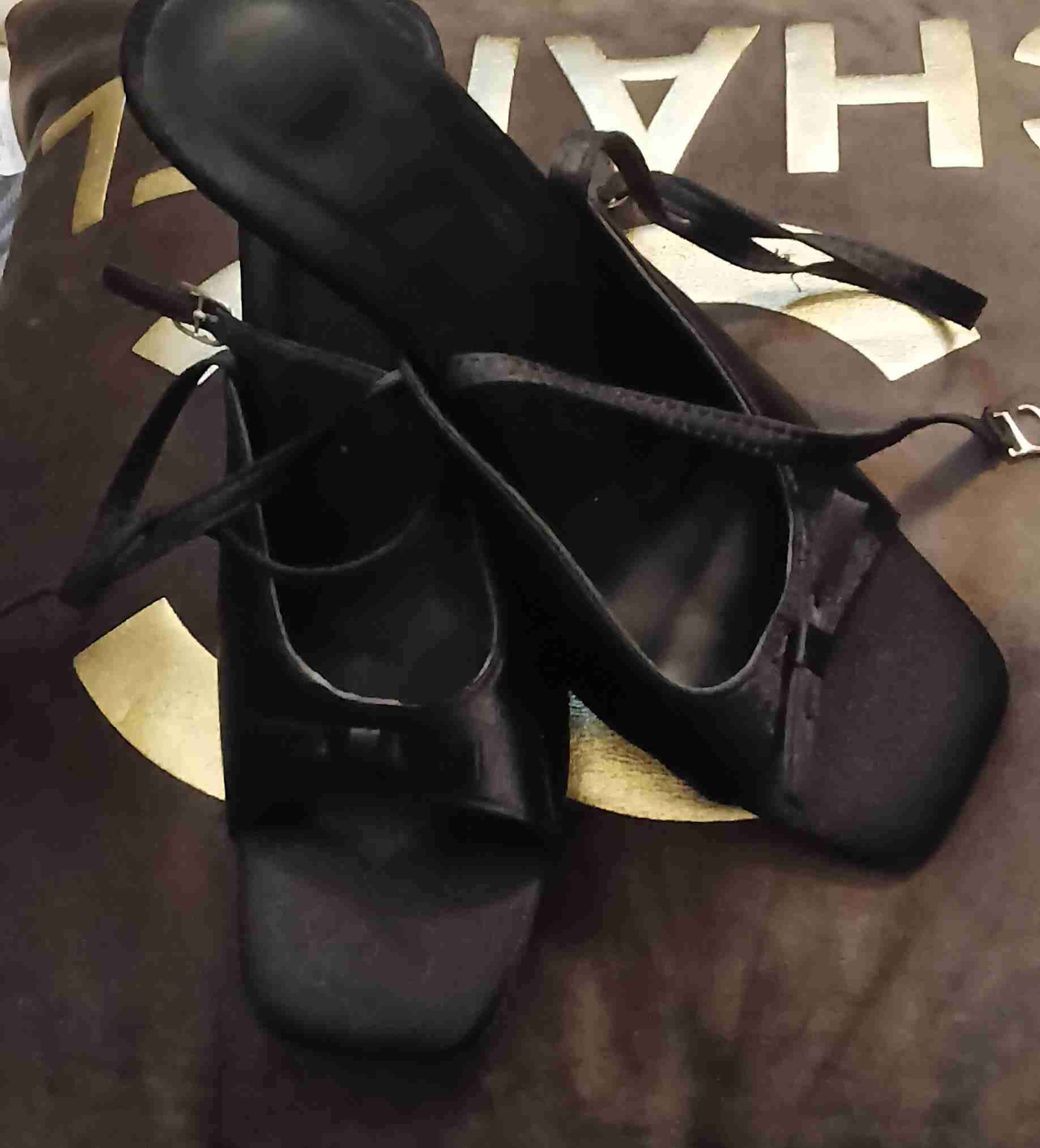 Sandalias negras de taco, 250 cm, talla 39, sin uso, taco de 10 cm aprox. No tienen detalles se venden por no uso.