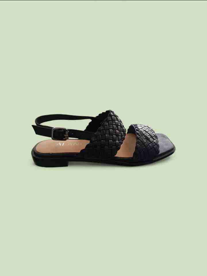 Sandalias planas negras trenzadas de Cuero