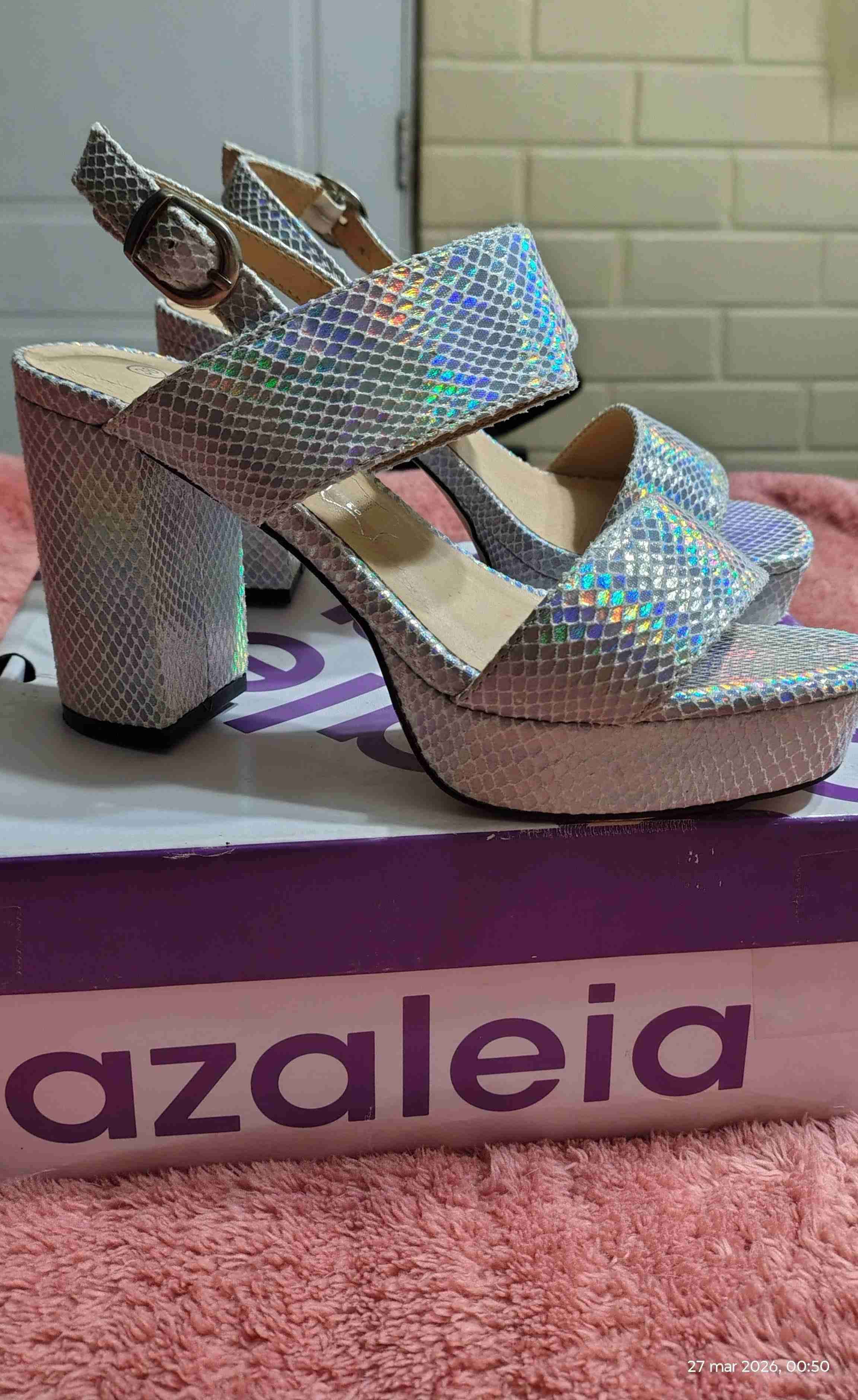 Elegantes sandalias de plataforma con diseño tipo escamas en tornasol.Tienen una sola postura usadas para una licenciatura. En excelente estado.