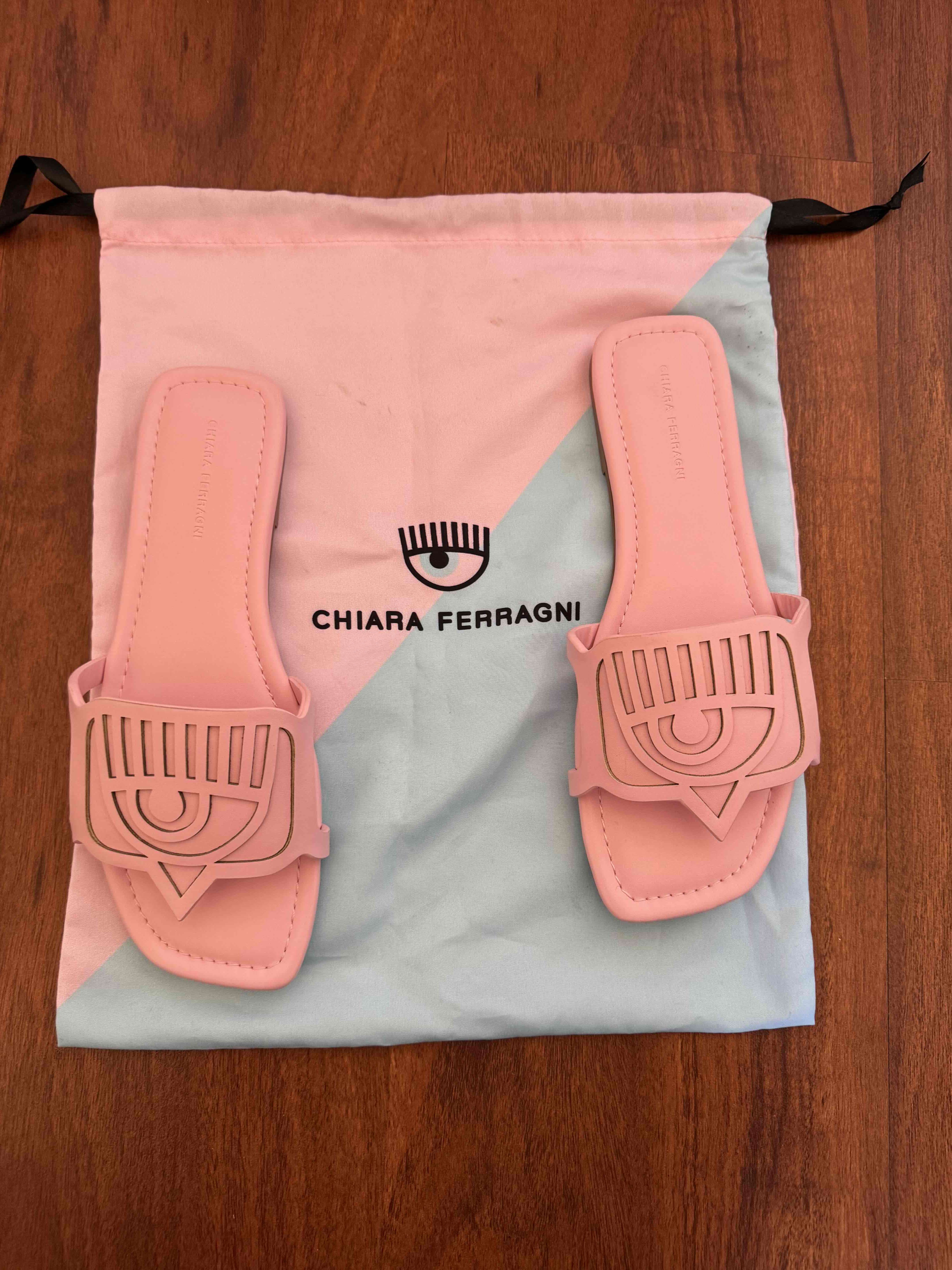 Sandalias estilo slide, color rosado, en buen estado. Ideales para el verano. Incluye bolsa original.Numero 37, 24 cm en planta Originales.