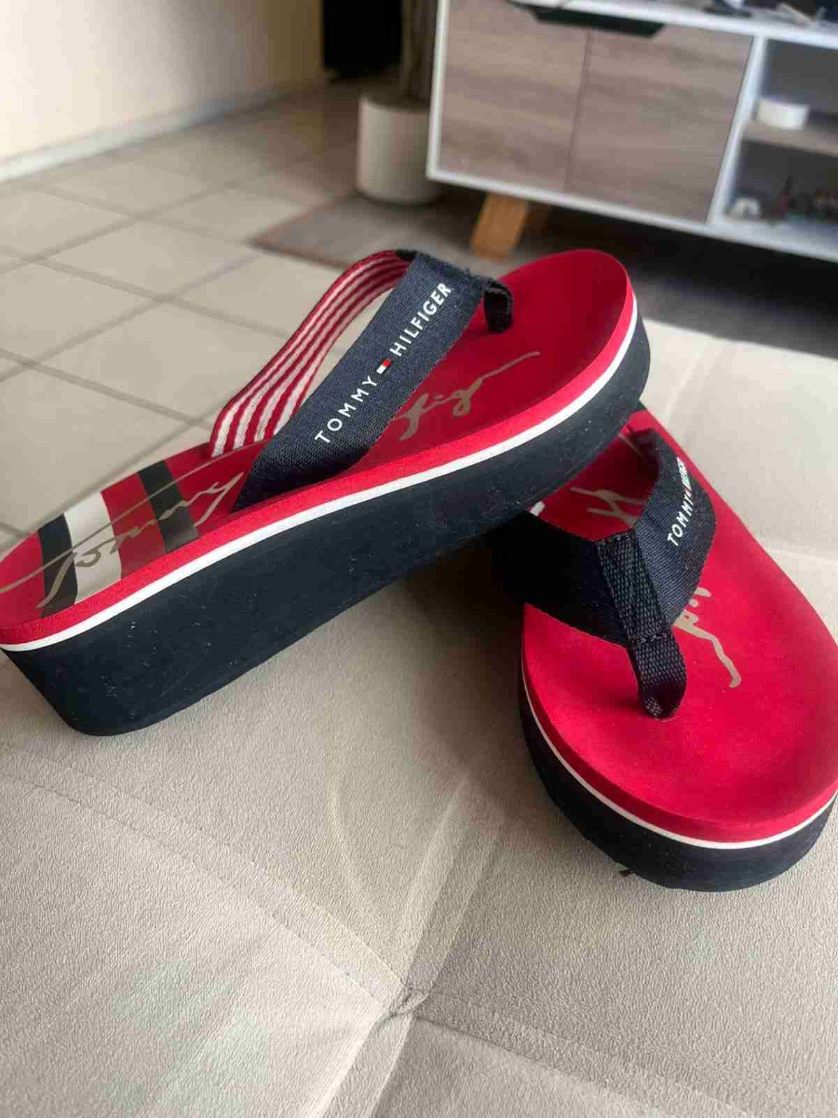 Sandalias Tommy Hilfiger de color rojo y negro, perfectas para el verano. En buen estado con ligero uso. Cualquier consulta hablar al +56996611326