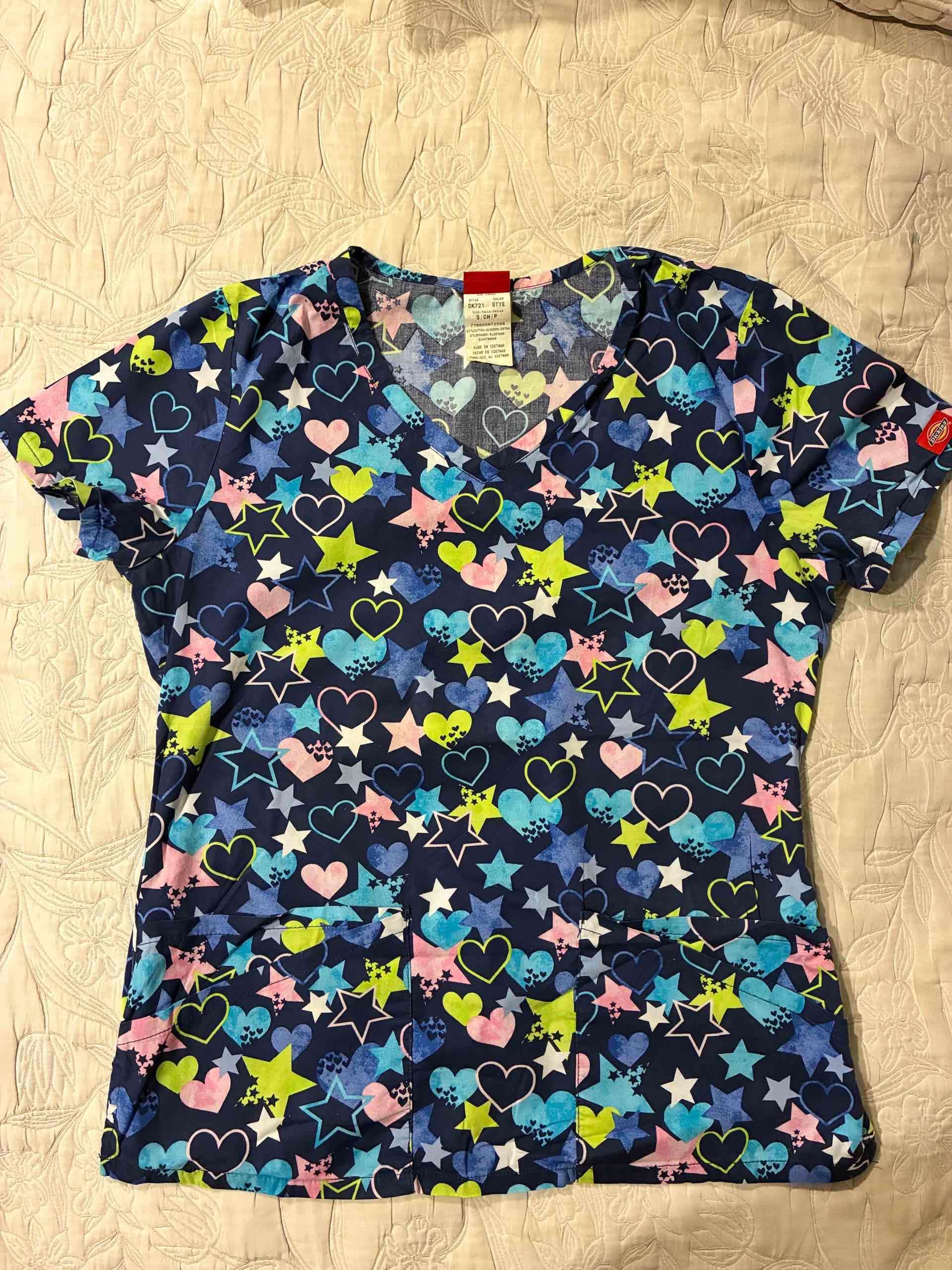 Pechera clínica azul marino con estampado. Talla M. Muy buen estado
