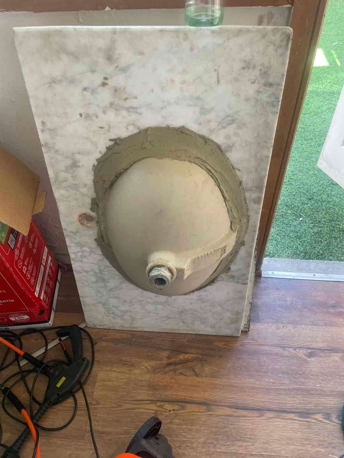 Lavamanos de mármol en buen estado, ideal para baño elegante. Incluye soporte sólido para instalación (suciedad removible)