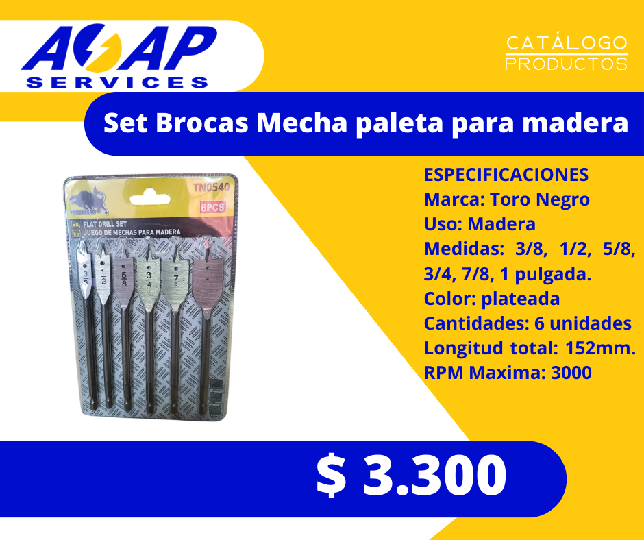 Set 6 Brocas Mecha Paleta para Madera - Toro Negro