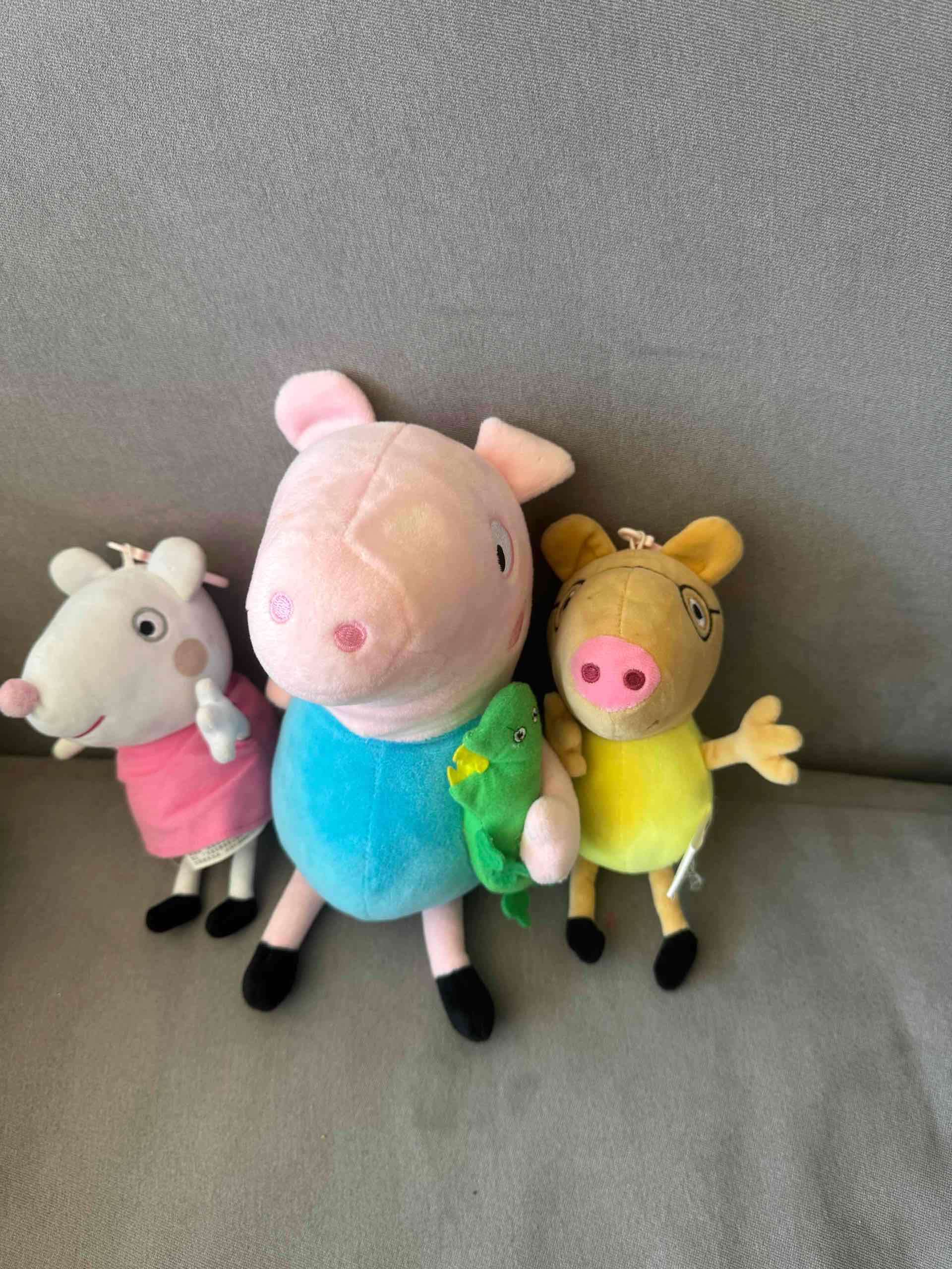 Tres peluches adorables, de los amigos de la Peppa Pig, perfectos para regalar a niños. En buen estado y suaves al tacto.