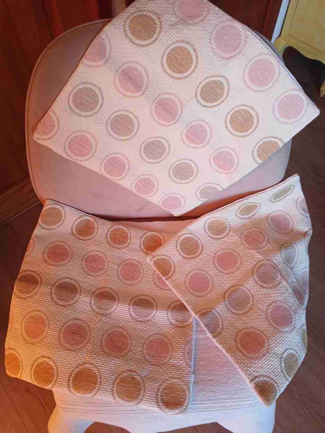 Hermosas fundas de cojines con diseño de círculos en tonos pastel. En buen estado, ideal para dormitorio chic. Confección artesanal.