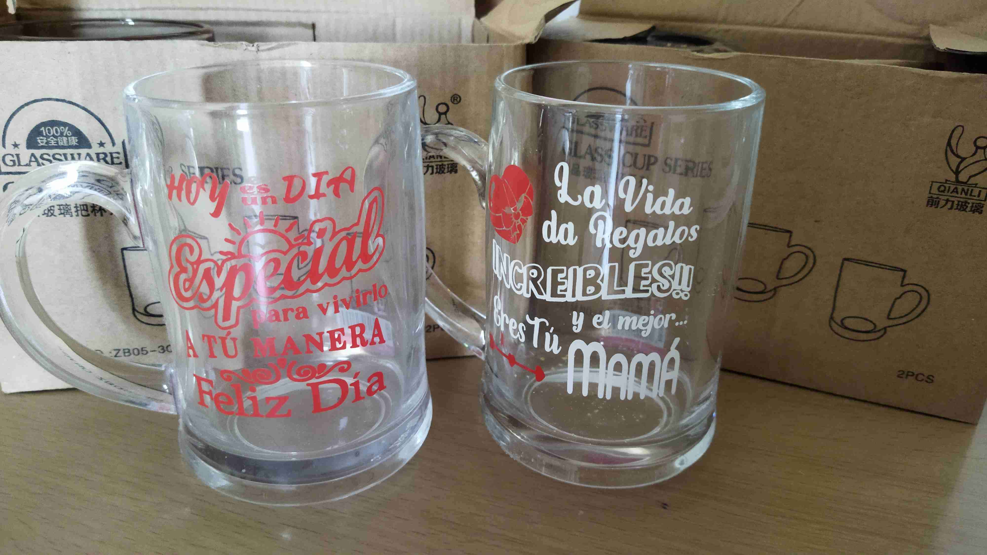 Set de 8 tazones de vidrio con mensajes estampados, ideal para regalos el día de la madre. Nuevo, perfecto para el desayuno diario de las mamitas. Set de 8 x $20.000