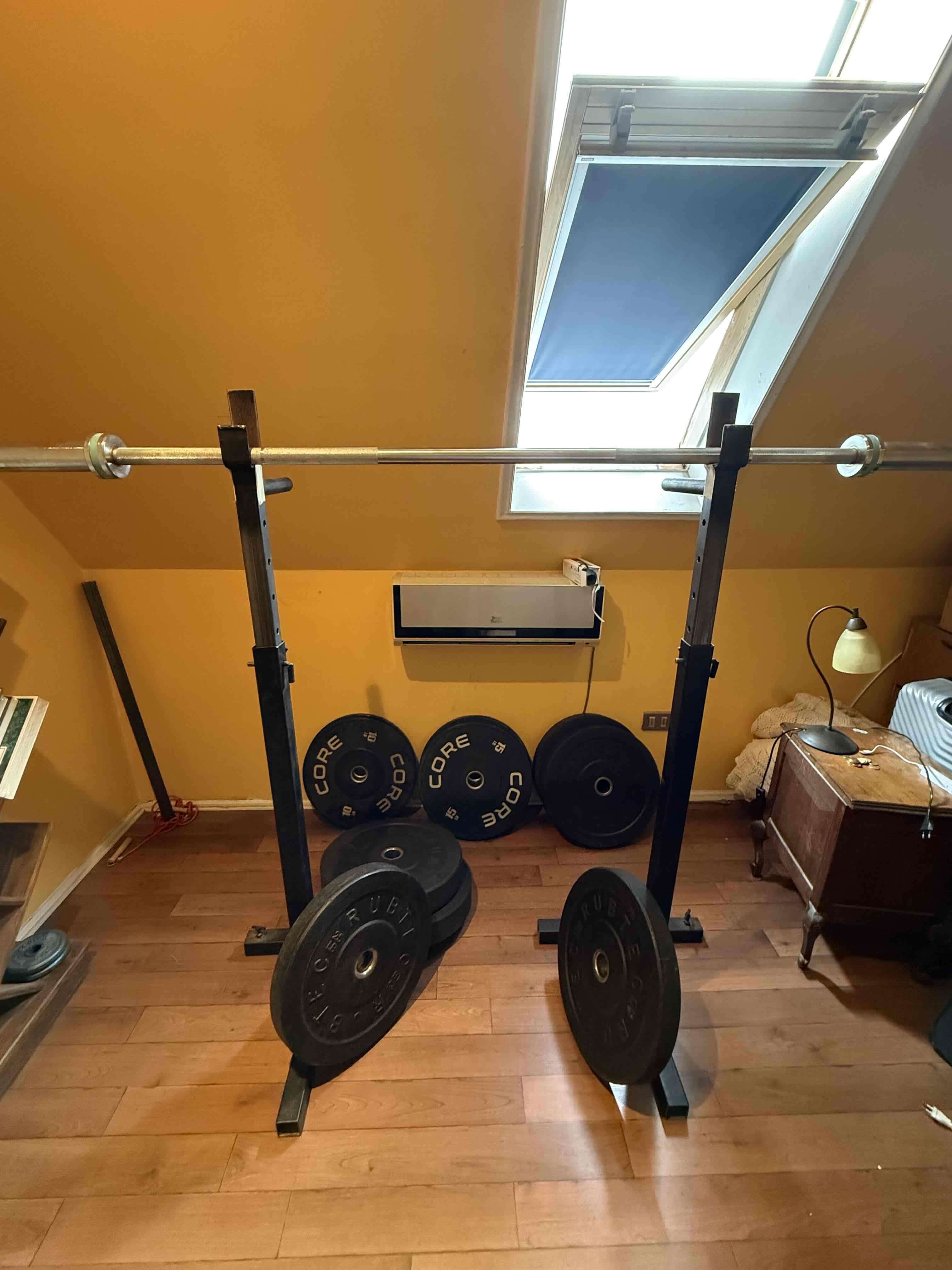 Set de discos + Barra Olímpica + Rack