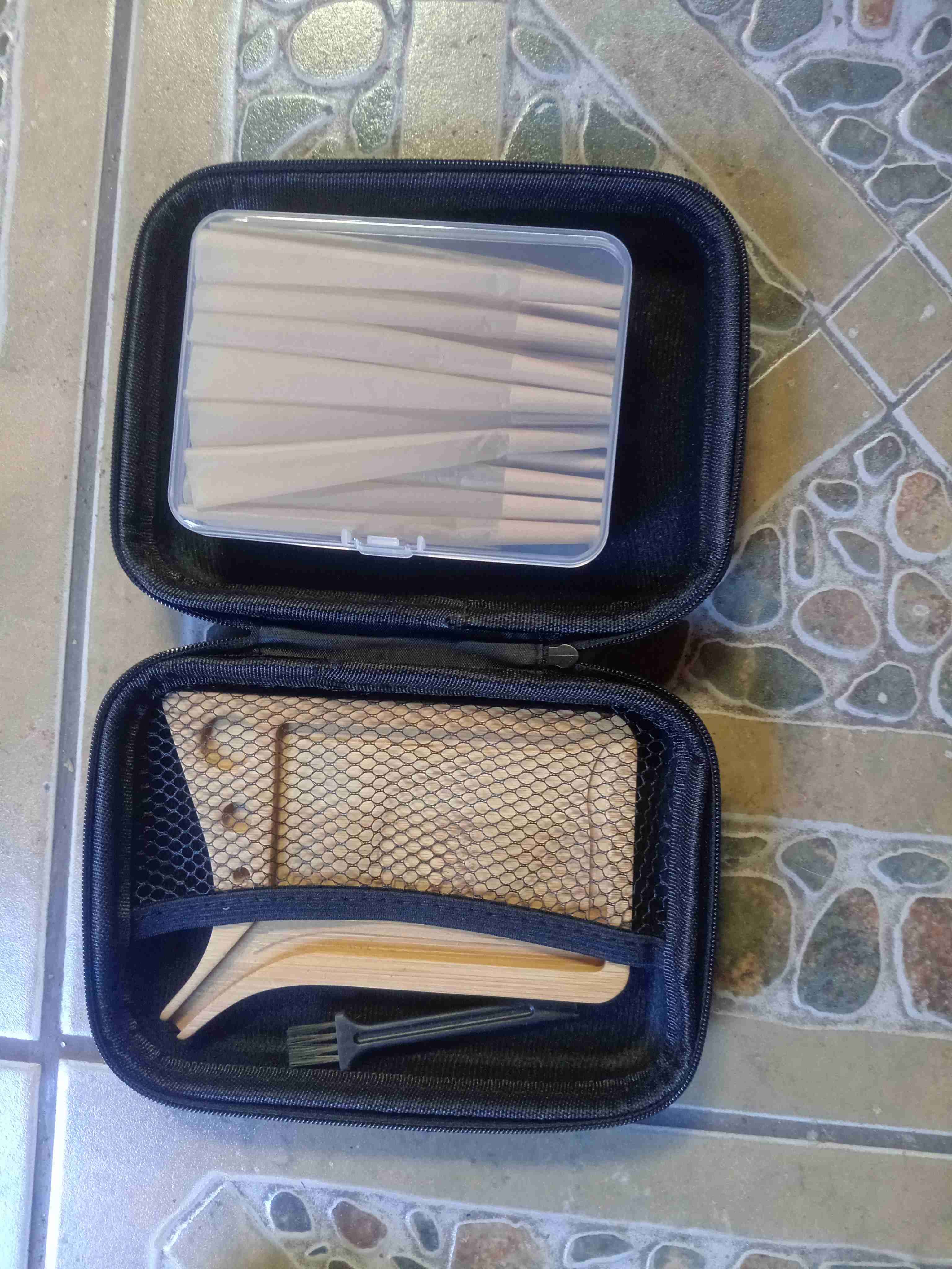 Kit compacto para fumar, ideal para mantener tus artículos impecables. Incluye estuche de mano.