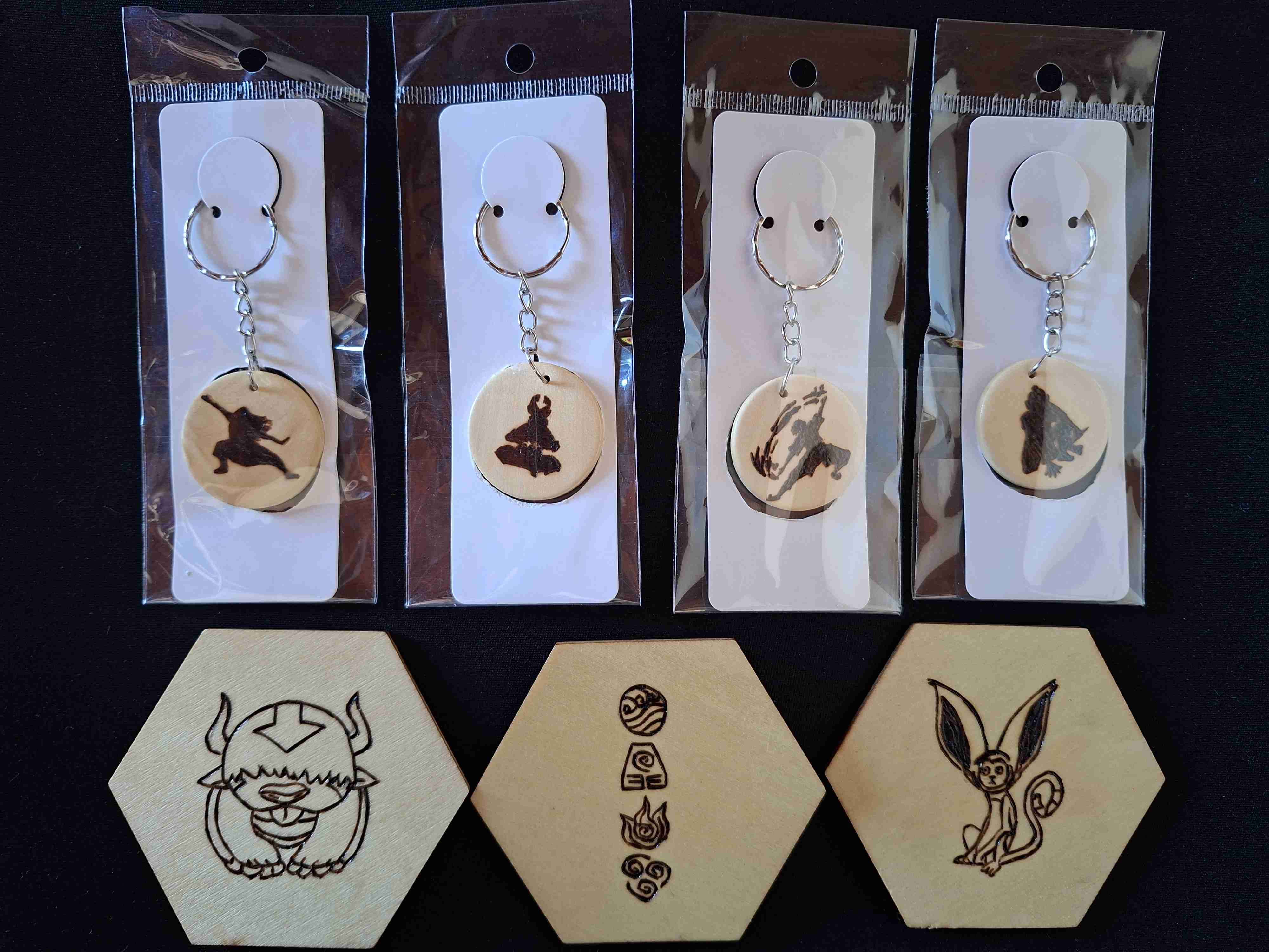Set de llaveros y posavasos artesanales de Avatar