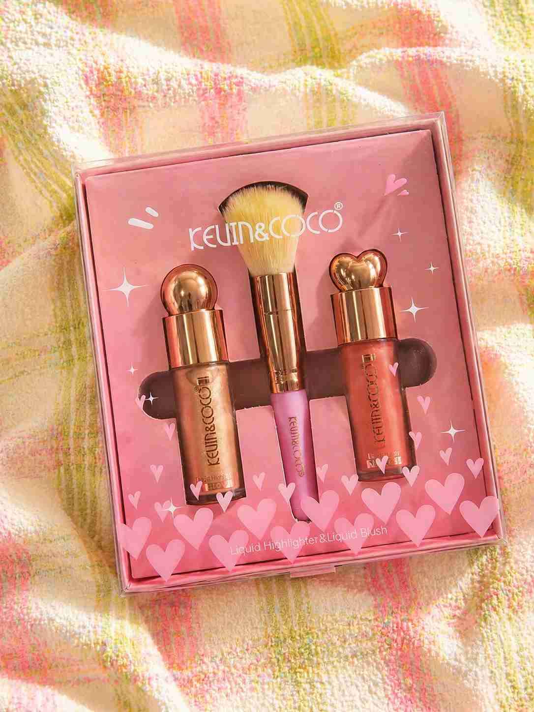 Set de maquillaje líquido con iluminador y rubor. Ideal para un look fresco y brillante. Incluye brocha aplicadora. Con registro ISP.
