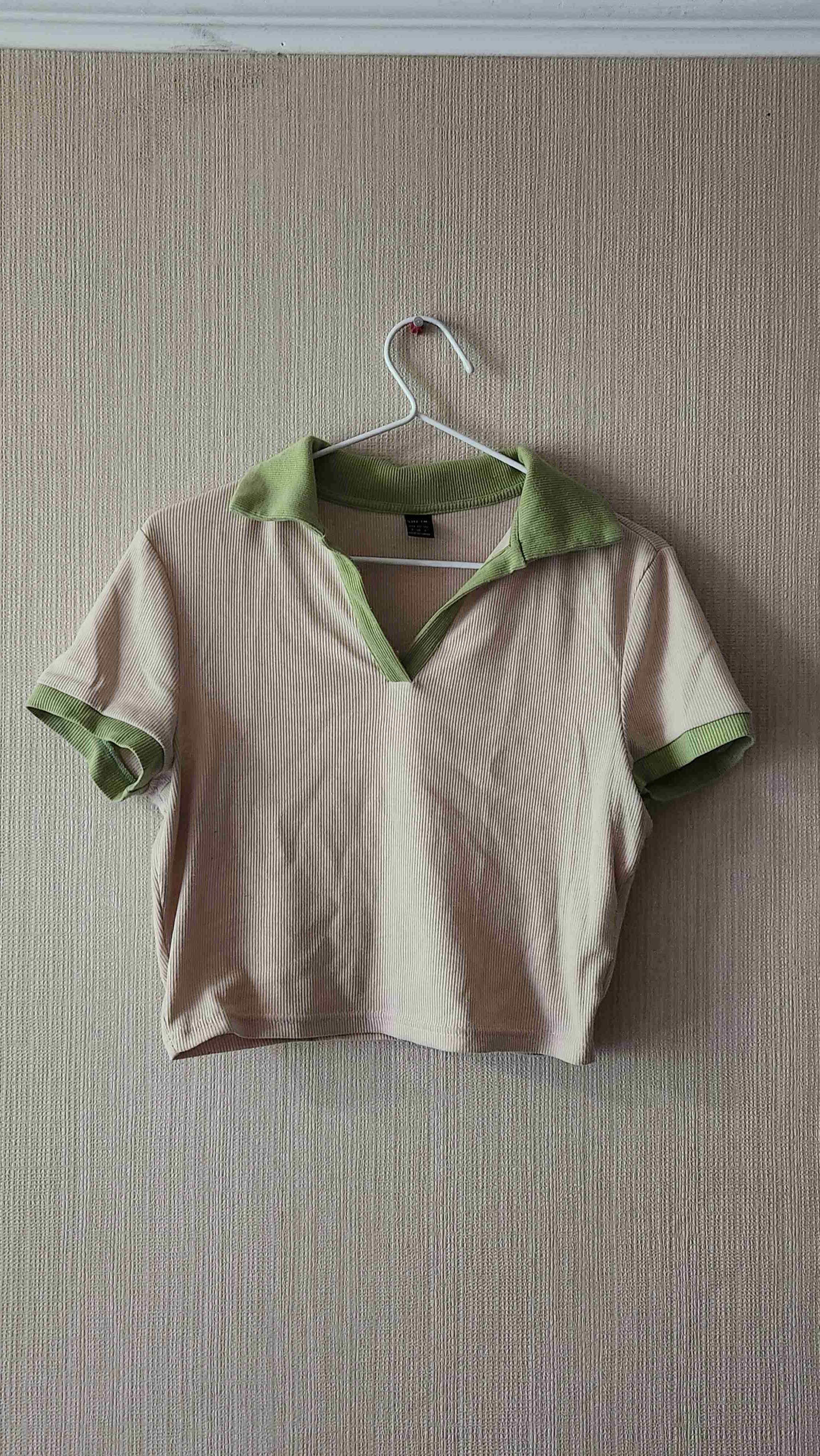 Polera beige con detalles verdes, ideal para el verano. Esta en buen estado.