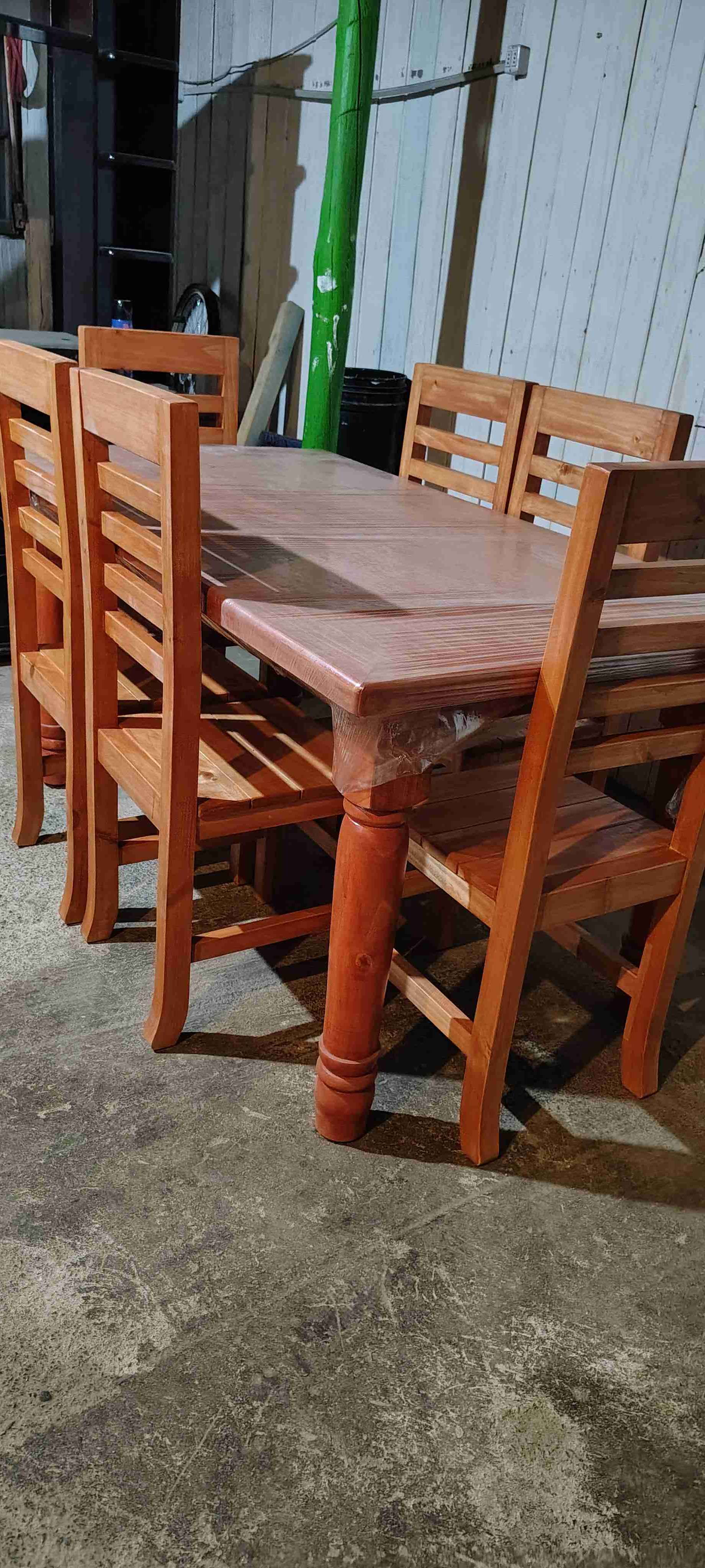 Juego de comedor de madera elegante con seis sillas . Ideal para tu decoración de tu hogar color cerezo igual a la imagen