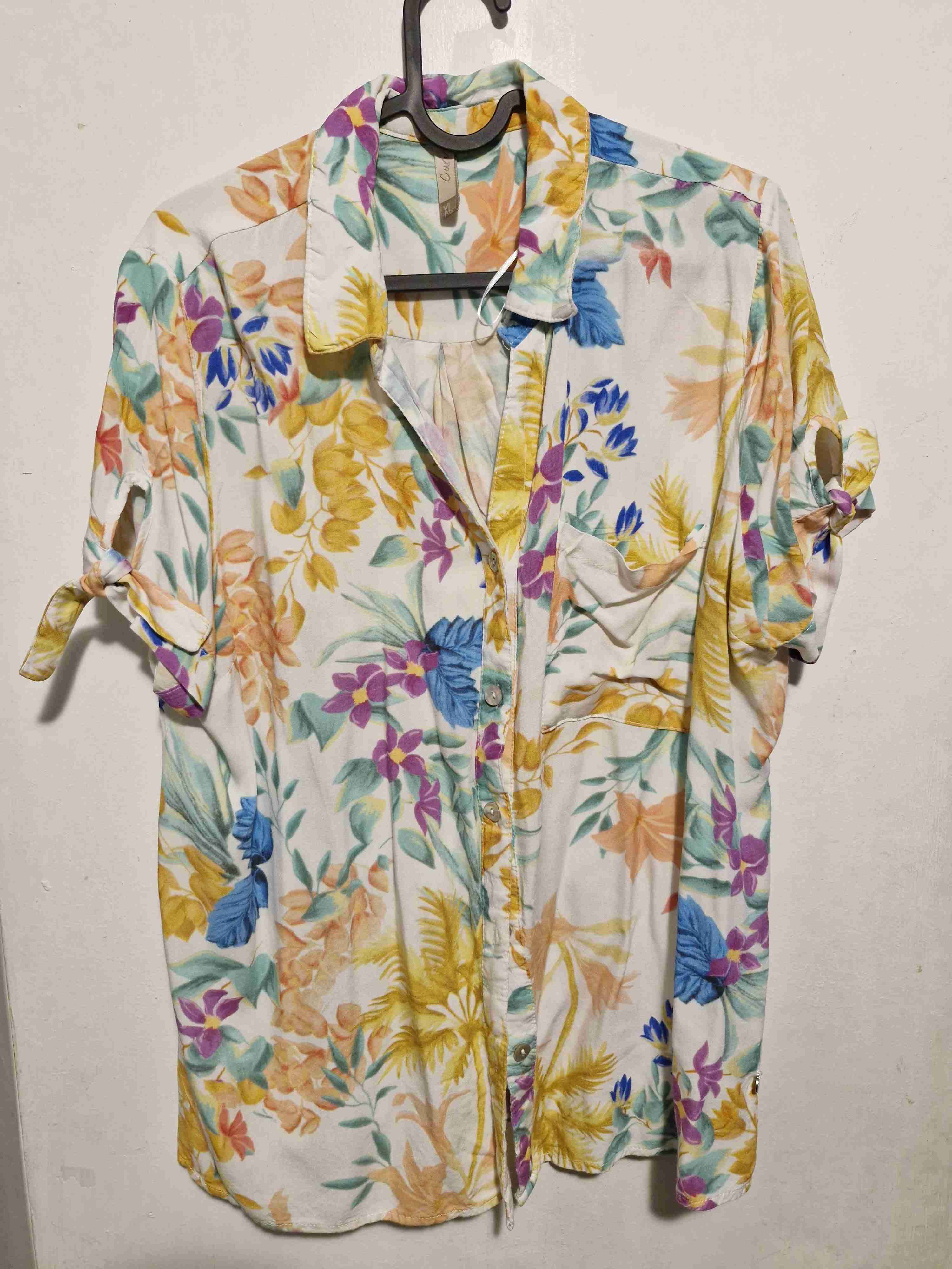 Camisa estilo hawaiana de flores, perfecta para el verano. En buen estado, colores vibrantes.